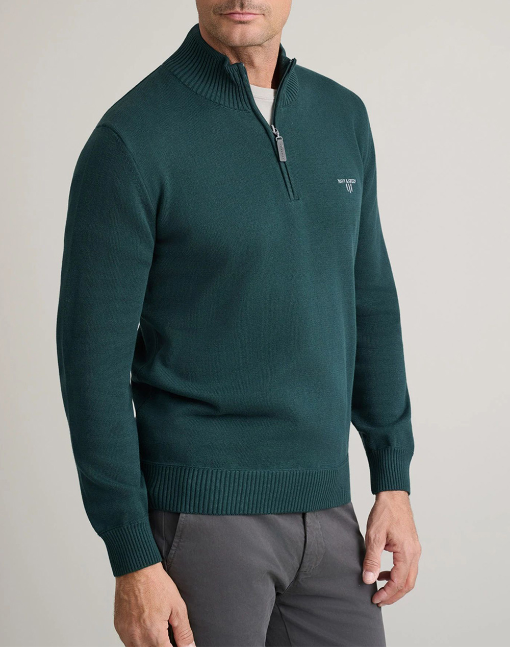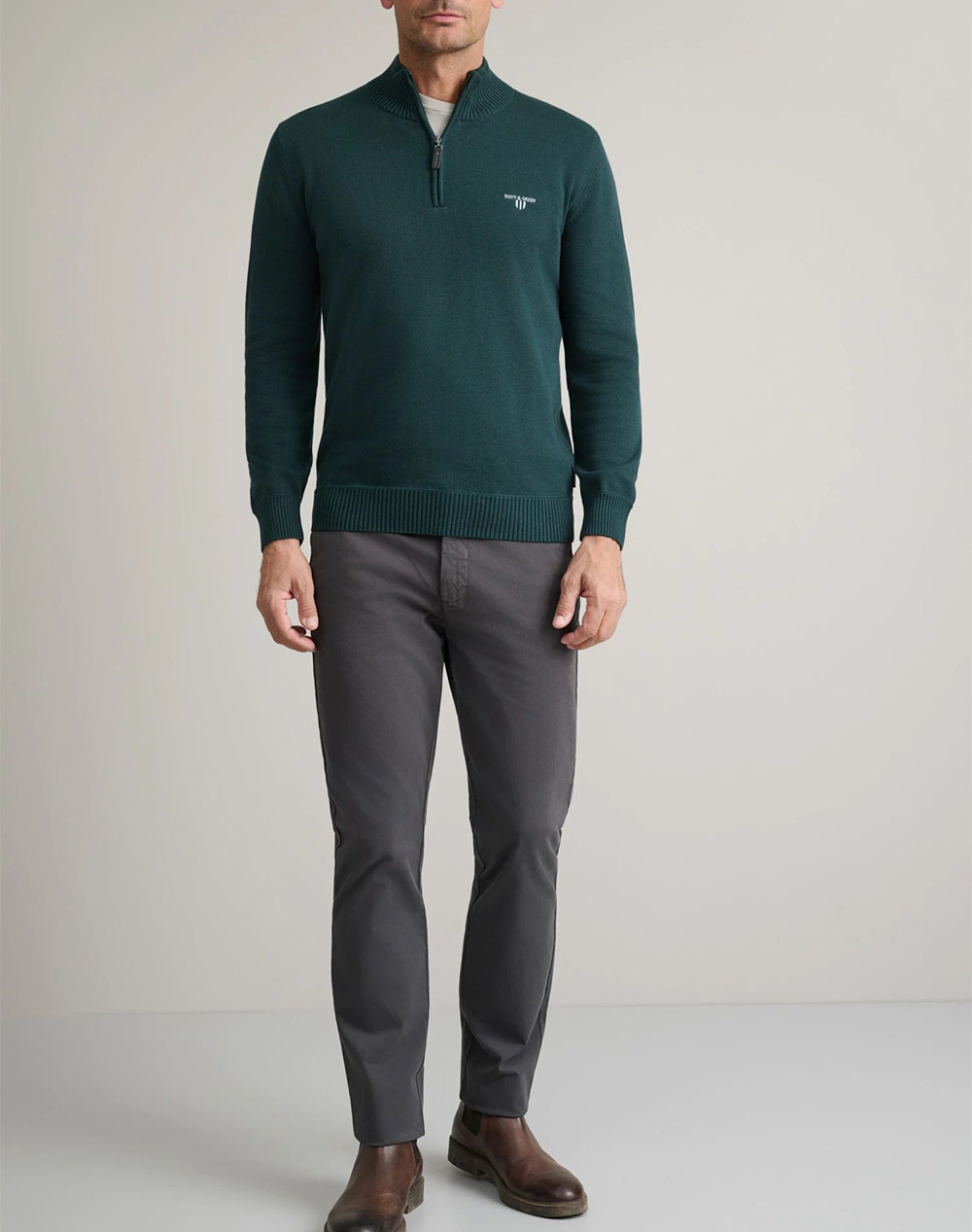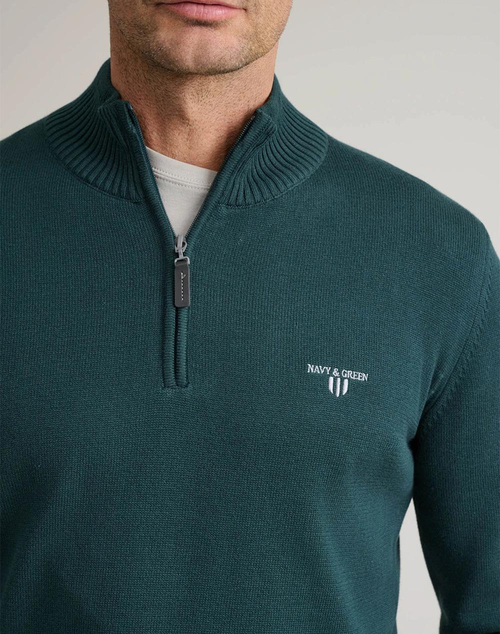 Ανδρική πλεκτή μπλούζα, σε κανονική γραμμή, μακρυμάνικη, με λογότυπο στο στήθος και ψηλό λαιμό με half zip. (Σύνθεση: 100% Βαμβάκι)