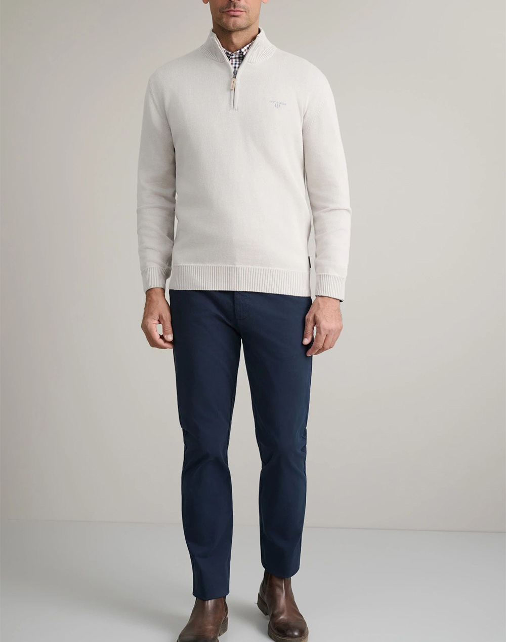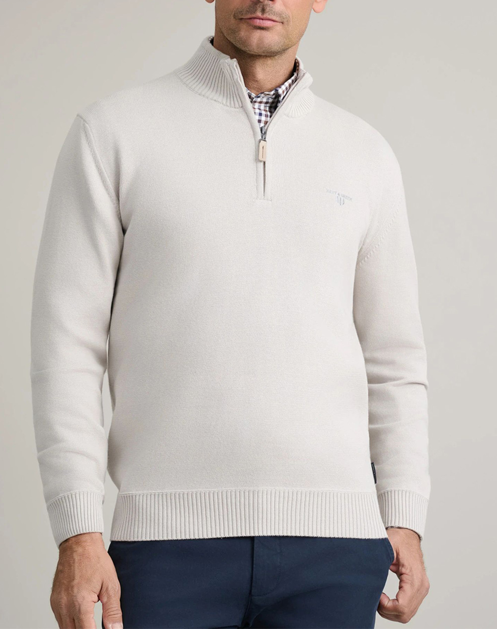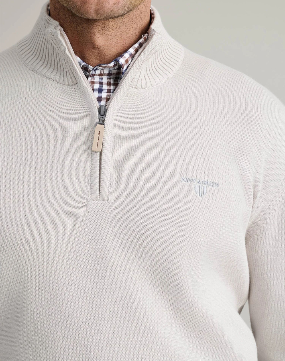 Ανδρική πλεκτή μπλούζα, σε κανονική γραμμή, μακρυμάνικη, με λογότυπο στο στήθος και ψηλό λαιμό με half zip. (Σύνθεση: 100% Βαμβάκι)