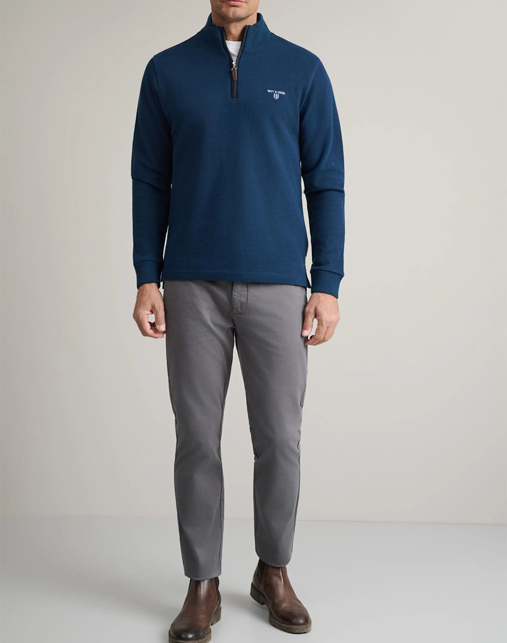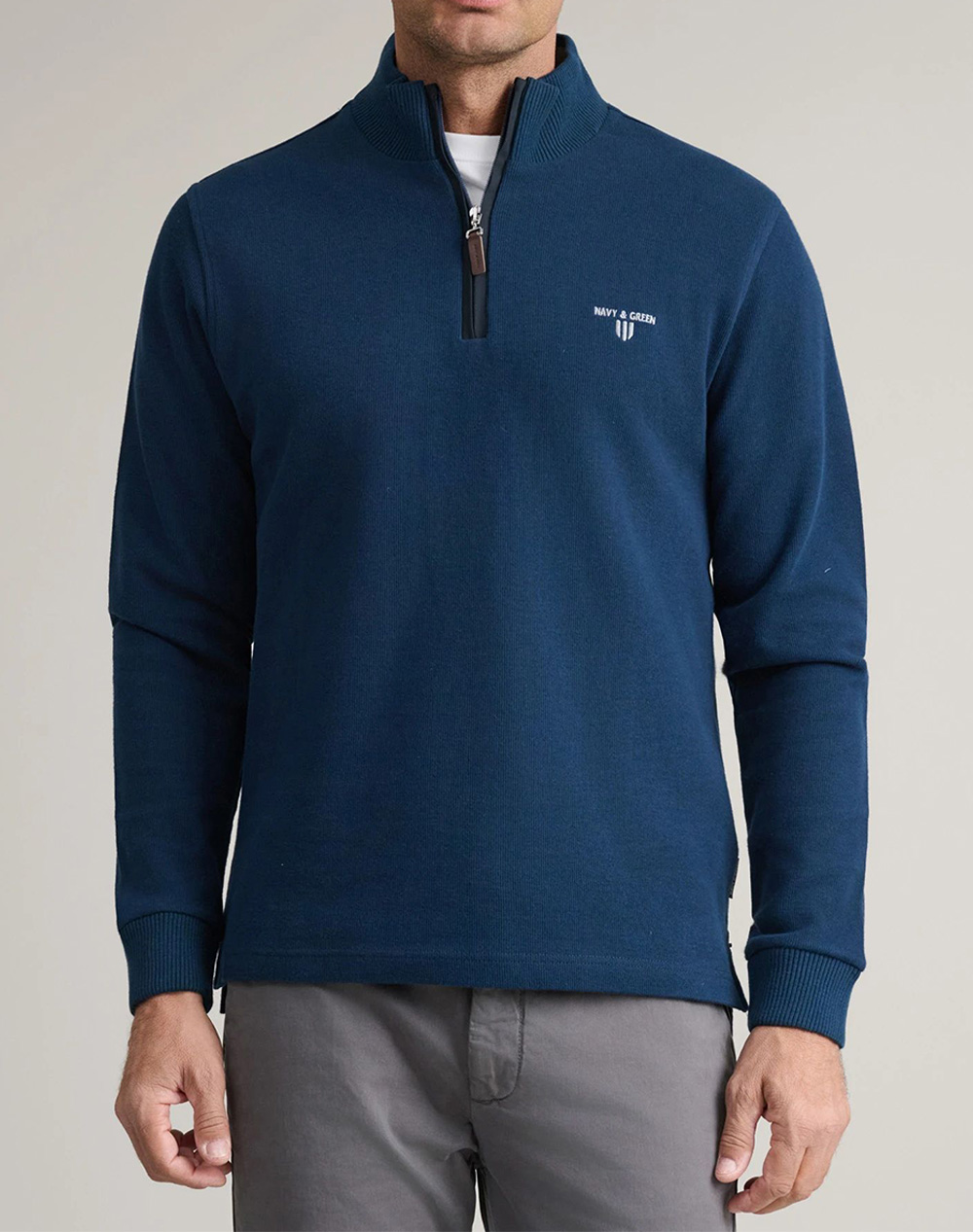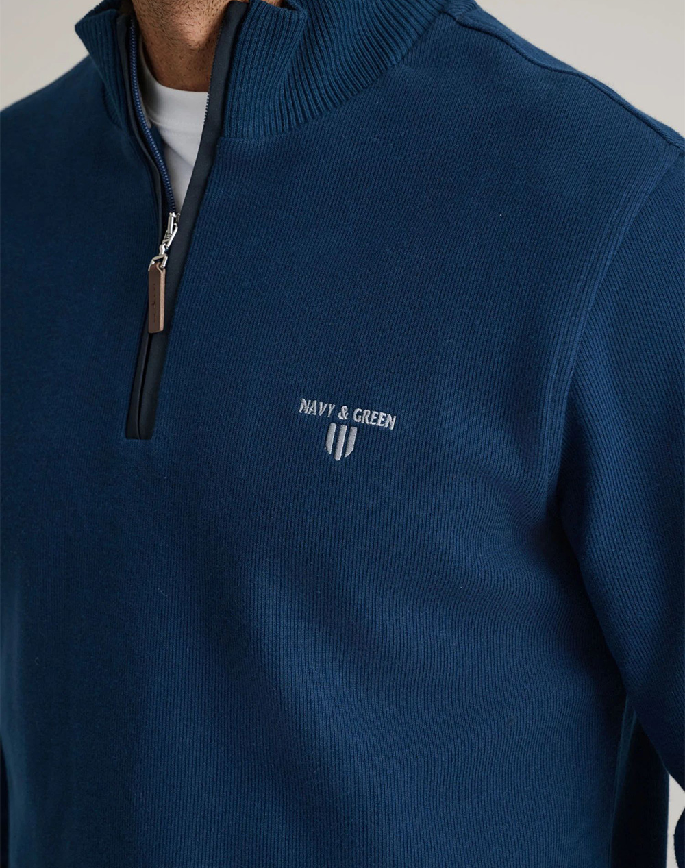 Ανδρική πλεκτή μπλούζα, σε κανονική γραμμή, μακρυμάνικη, με λογότυπο στο στήθος και όρθιο γιακά με half zip. (Σύνθεση: 100% Βαμβάκι)