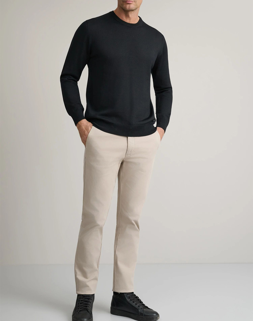 Ανδρική πλεκτή μπλούζα, σε κανονική γραμμή, μακρυμάνικη, με επεξεργασιά cashmere wash και στρογγυλή λαιμόκοψη. (Σύνθεση: 100% Μαλλί Merino)