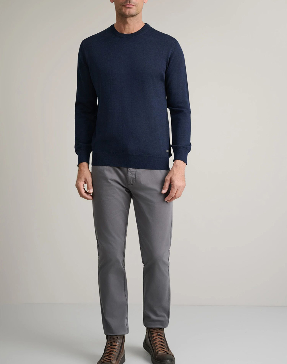 Ανδρική πλεκτή μπλούζα, σε κανονική γραμμή, μακρυμάνικη, με επεξεργασιά cashmere wash και στρογγυλή λαιμόκοψη. (Σύνθεση: 100% Μαλλί Merino)