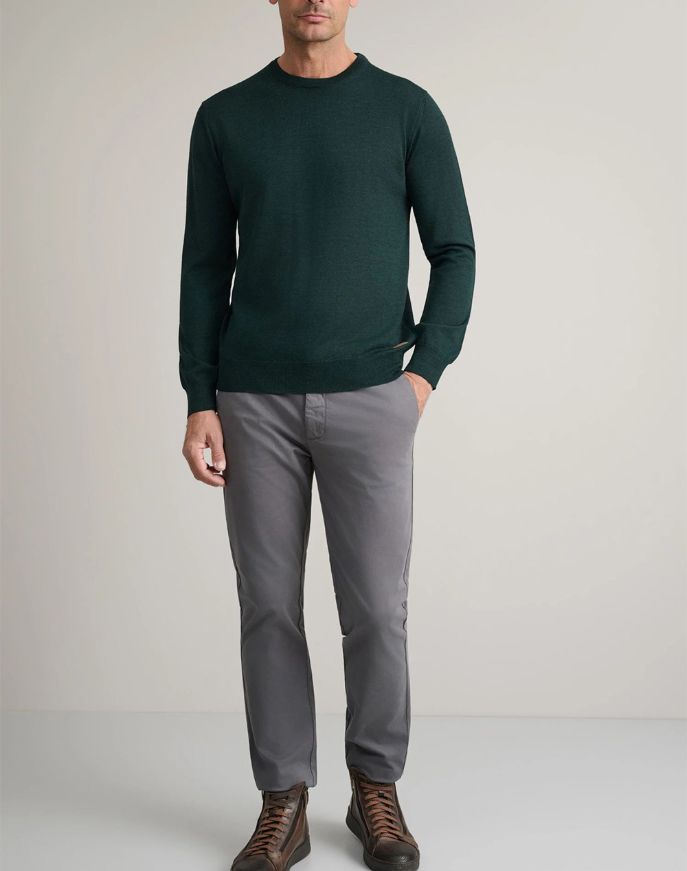 Ανδρική πλεκτή μπλούζα, σε κανονική γραμμή, μακρυμάνικη, με επεξεργασιά cashmere wash και στρογγυλή λαιμόκοψη. (Σύνθεση: 100% Μαλλί Merino)