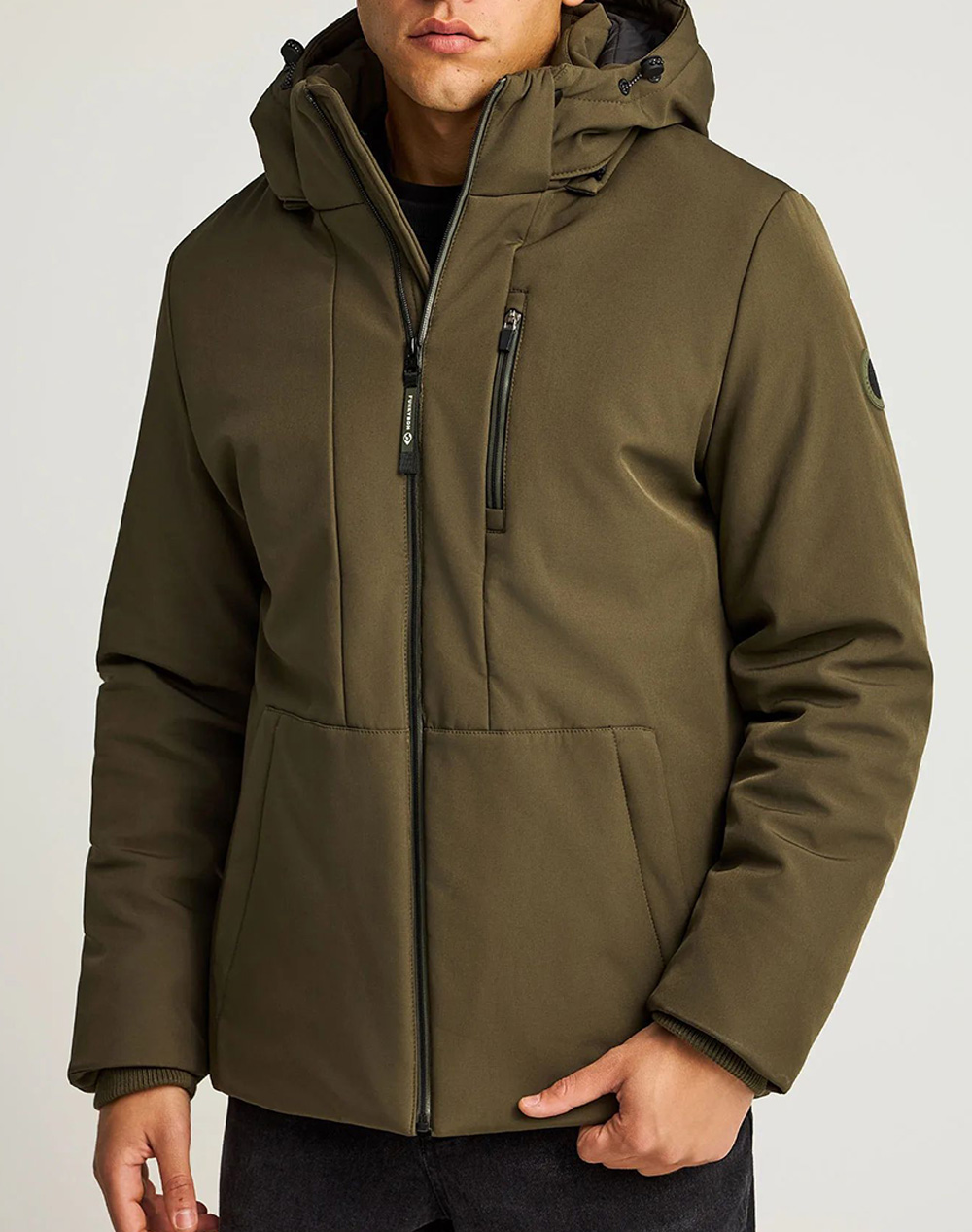 Ανδρικό μπουφάν, σε κανονική γραμμή, με ρυθμιζόμενη κουκούλα με κορδόνι, πλαϊνές τσέπες και κλείσιμο κατά μήκος με φερμουάρ. (Σύνθεση: 100% Πολυεστέρας)