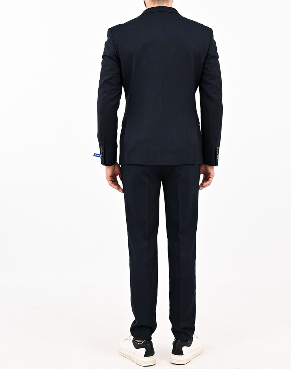Ανδρικό κοστούμι, σε κανονική γραμμή, διαθέτει δίκουμπο σακάκι με γιακά πέτο και παντελόνι στο ίδιο μοτίβο. (Σύνθεση: Συνθετικό ύφασμα)