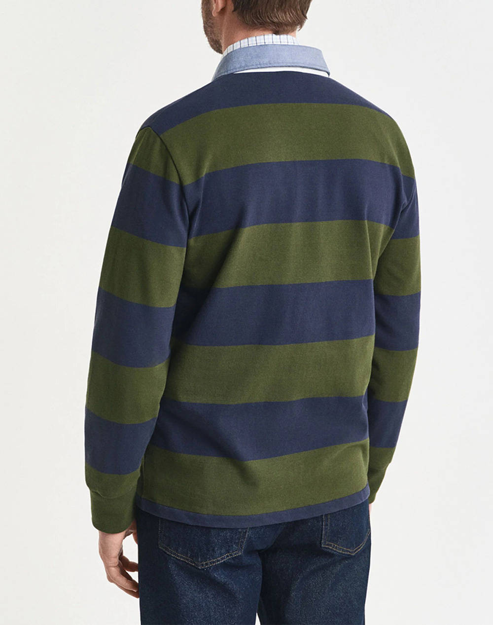 Ανδρική μπλούζα polo, σε κανονική γραμμή, μακρυμάνικη, με ριγέ μοτίβο και γιακά polo που κλείνει με κουμπιά στη λαιμόκοψη. (Σύνθεση: 100% Βαμβάκι)