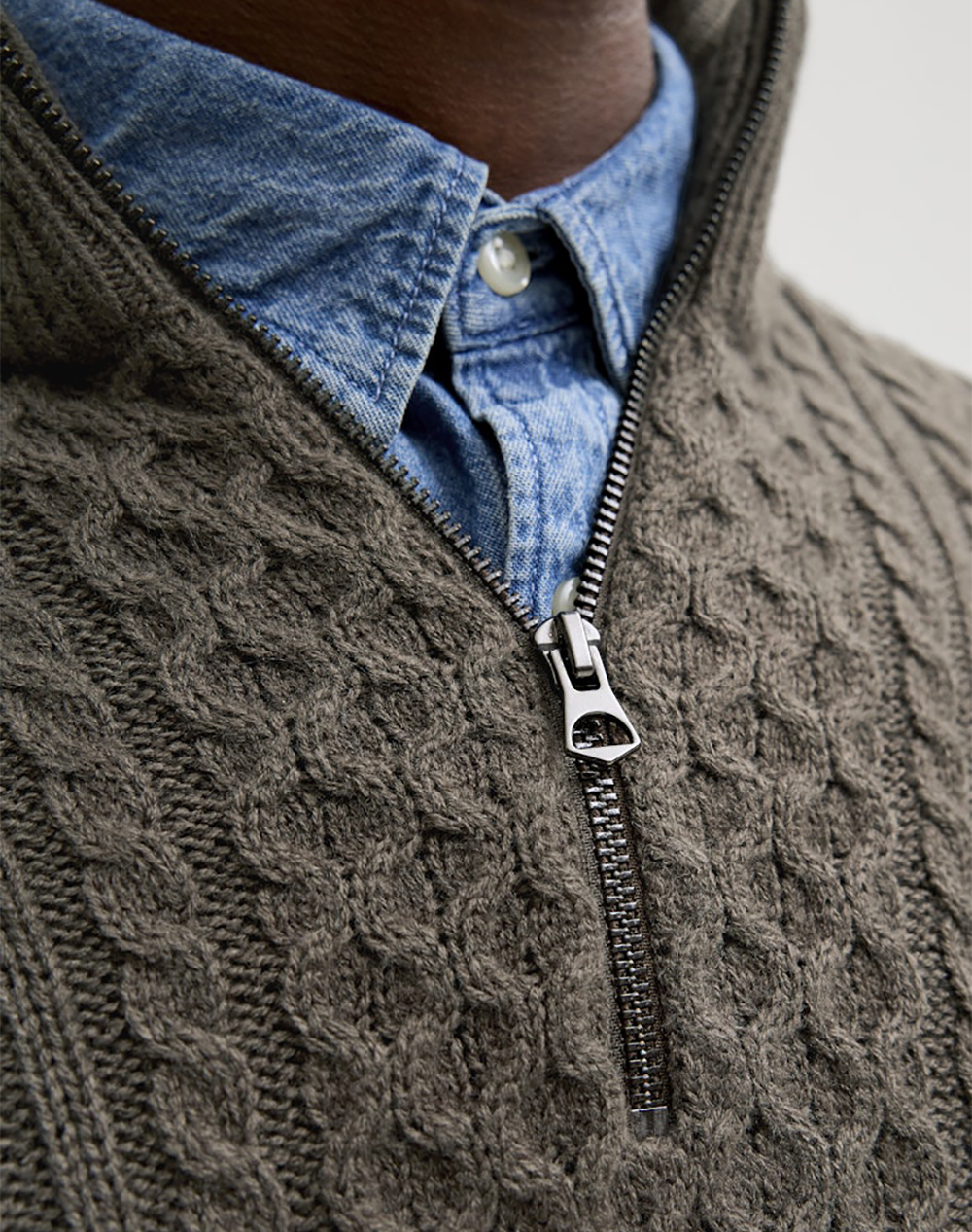JACK&JONES JPRBLUSEAN KNIT CABLE HALF ZIP SN