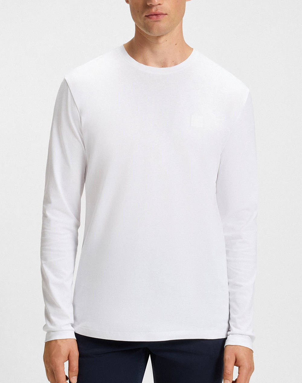 Ανδρικό t-shirt, σε κανονική γραμμή, μακρυμάνικο, με στρογγυλή λαιμόκοψη και τονικό badge λογότυπο στο στήθος. (Σύνθεση: 100% Βαμβάκι)