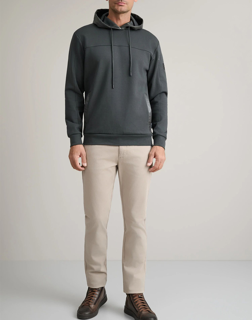 Ανδρική μπλούζα φούτερ, σε κανονική γραμμή, μακρυμάνικη, με ανάγλυφο λογότυπο μπροστά, τσέπες, ρυθμιζόμενη κουκούλα από τεχνικό ύφασμα και silicon badge στο μανίκι. (Σύνθεση: 79% Βαμβάκι, 13% Πολυεστέρας, 8% Ελαστάνη)