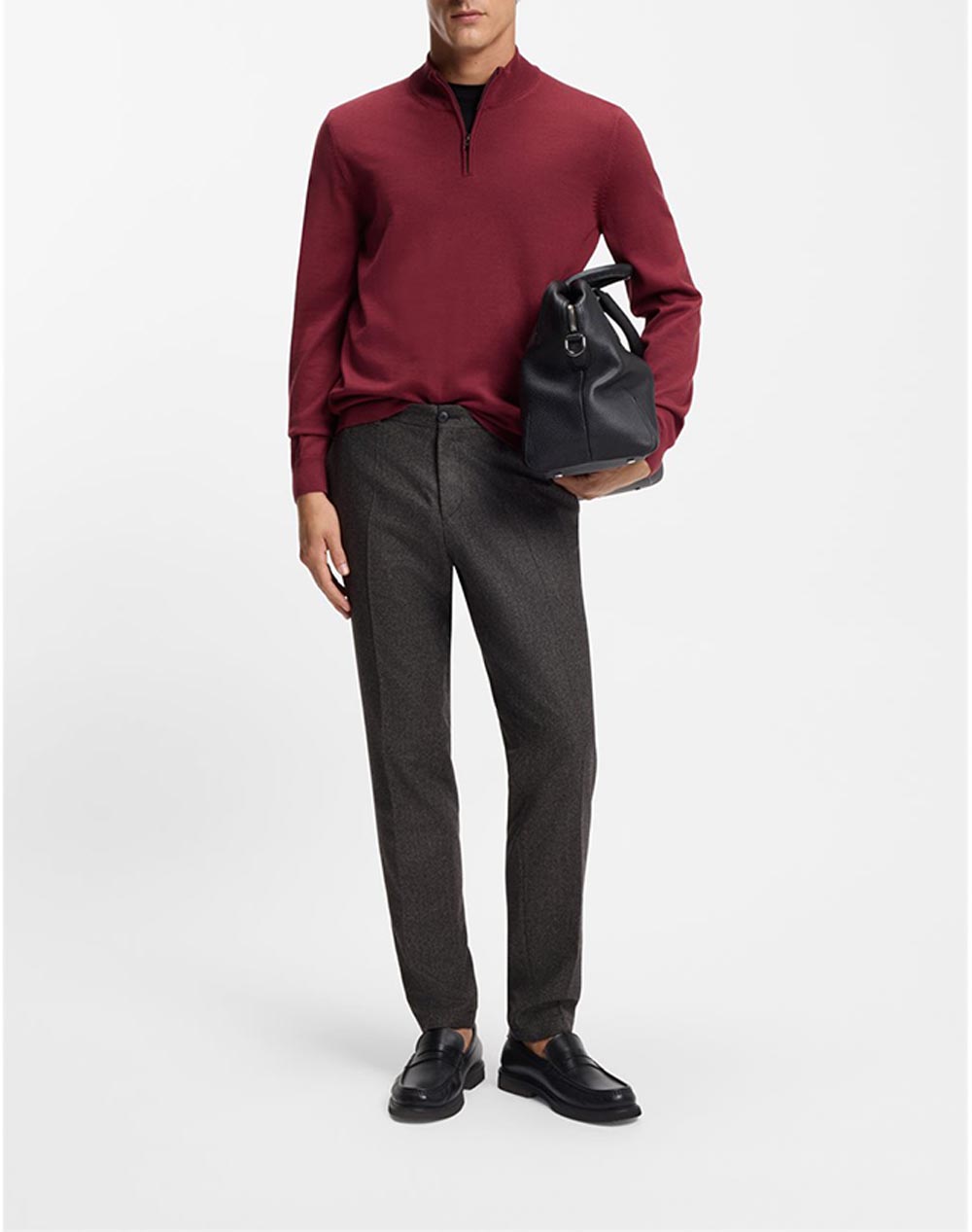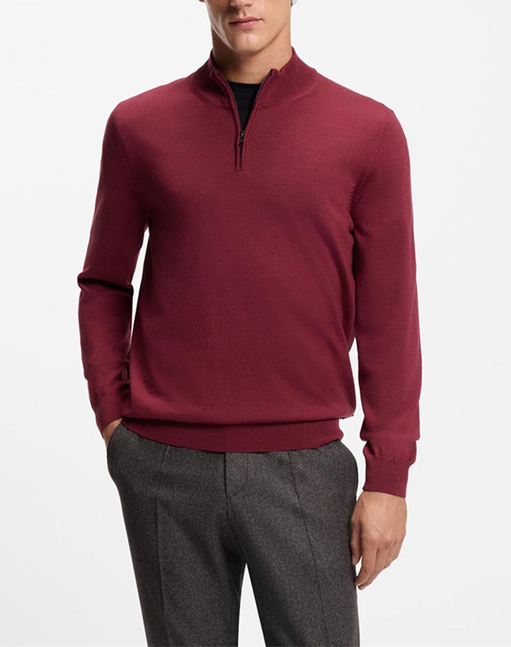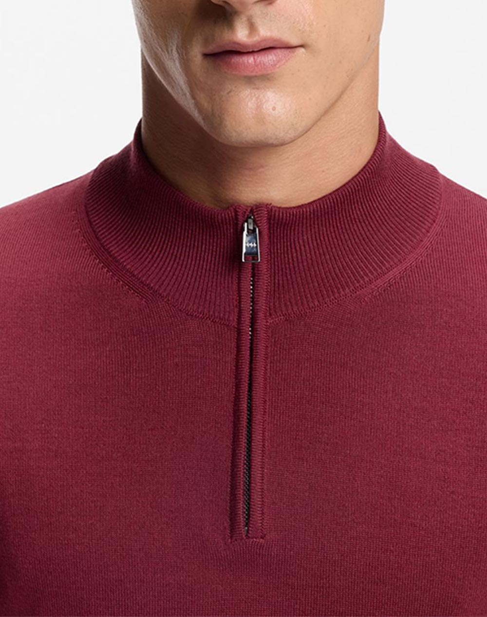 Ανδρικό πουλόβερ, σε κανονική γραμμή, μακρυμάνικο, με ψηλή λαιμόκοψη που κλείνει με μισό φερμουάρ. (Σύνθεση: 100% Φυσικό μαλλί)