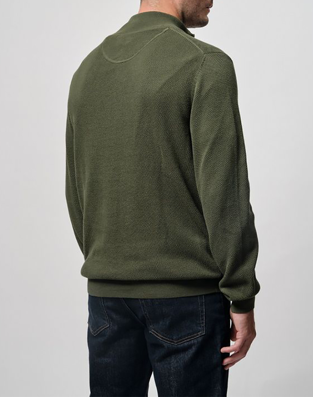 Ανδρικό πικέ πουλόβερ, σε κανονική γραμμή, με ψηλό γιακά που κλείνει με μισό φερμουάρ και κεντητό λογότυπο στο στήθος. (Σύνθεση: 100% Βαμβάκι)