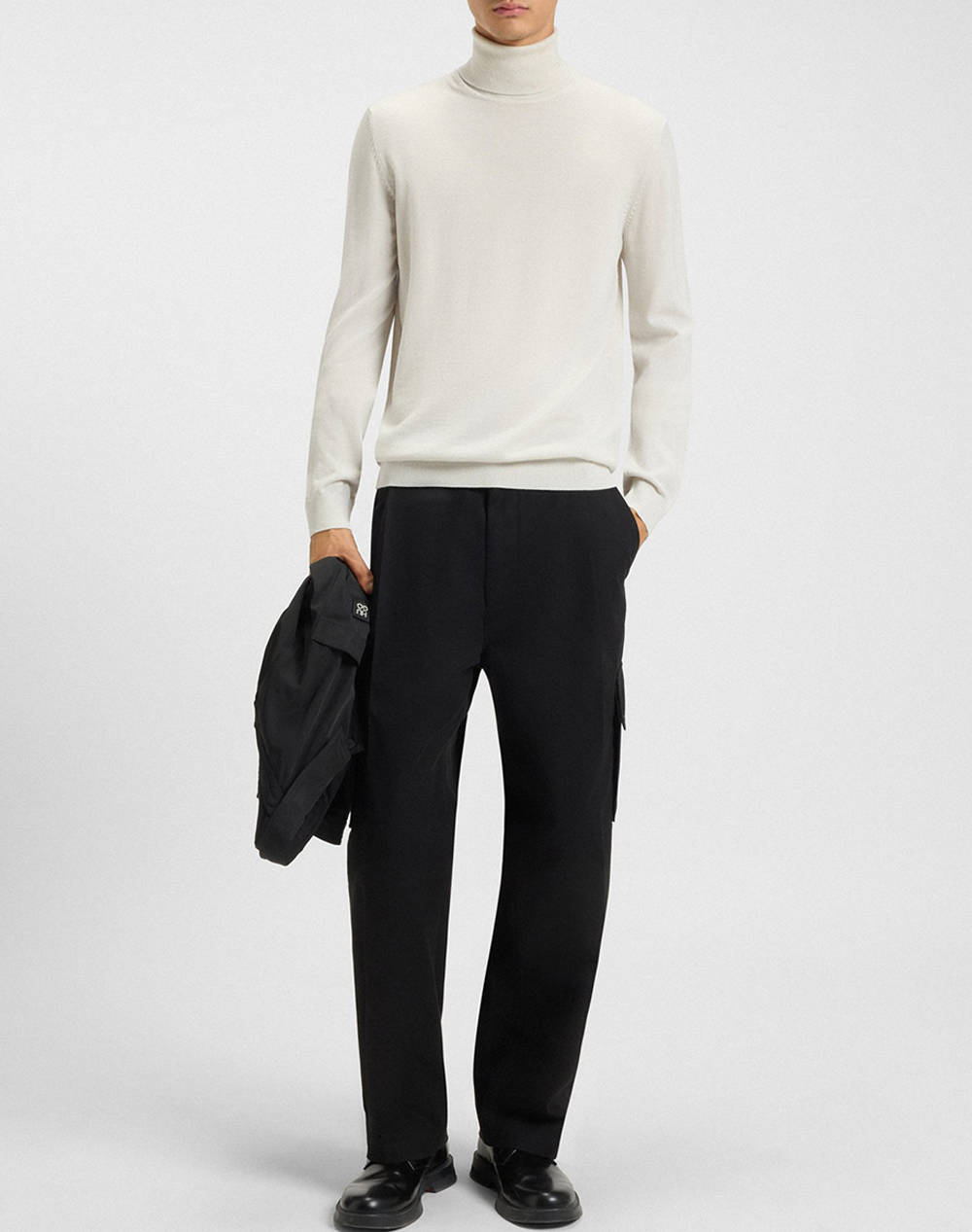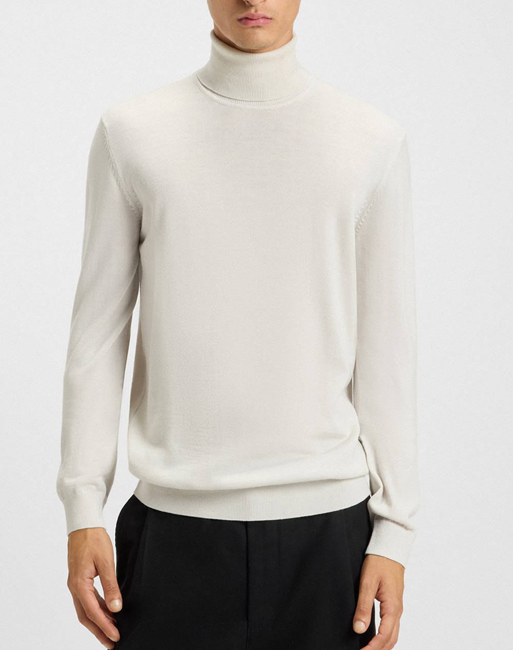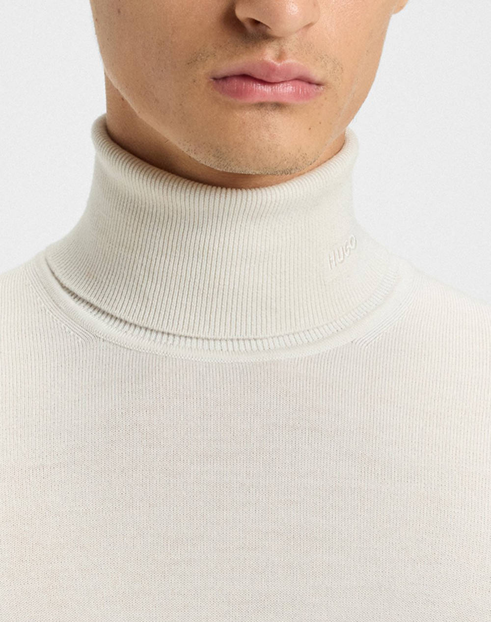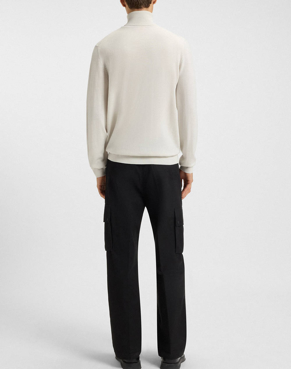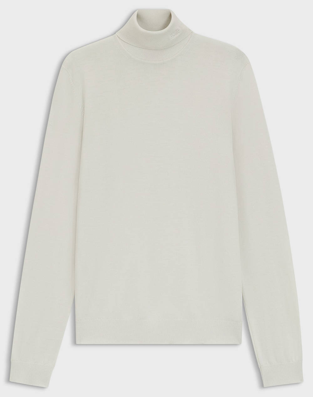 Ανδρικό πουλόβερ, σε κανονική γραμμή, μακρυμάνικο, διαθέτει rib λαιμόκοψη ζιβάγκο με κεντητό λογότυπο πάνω. (Σύνθεση: 100% Φυσικό μαλλί)