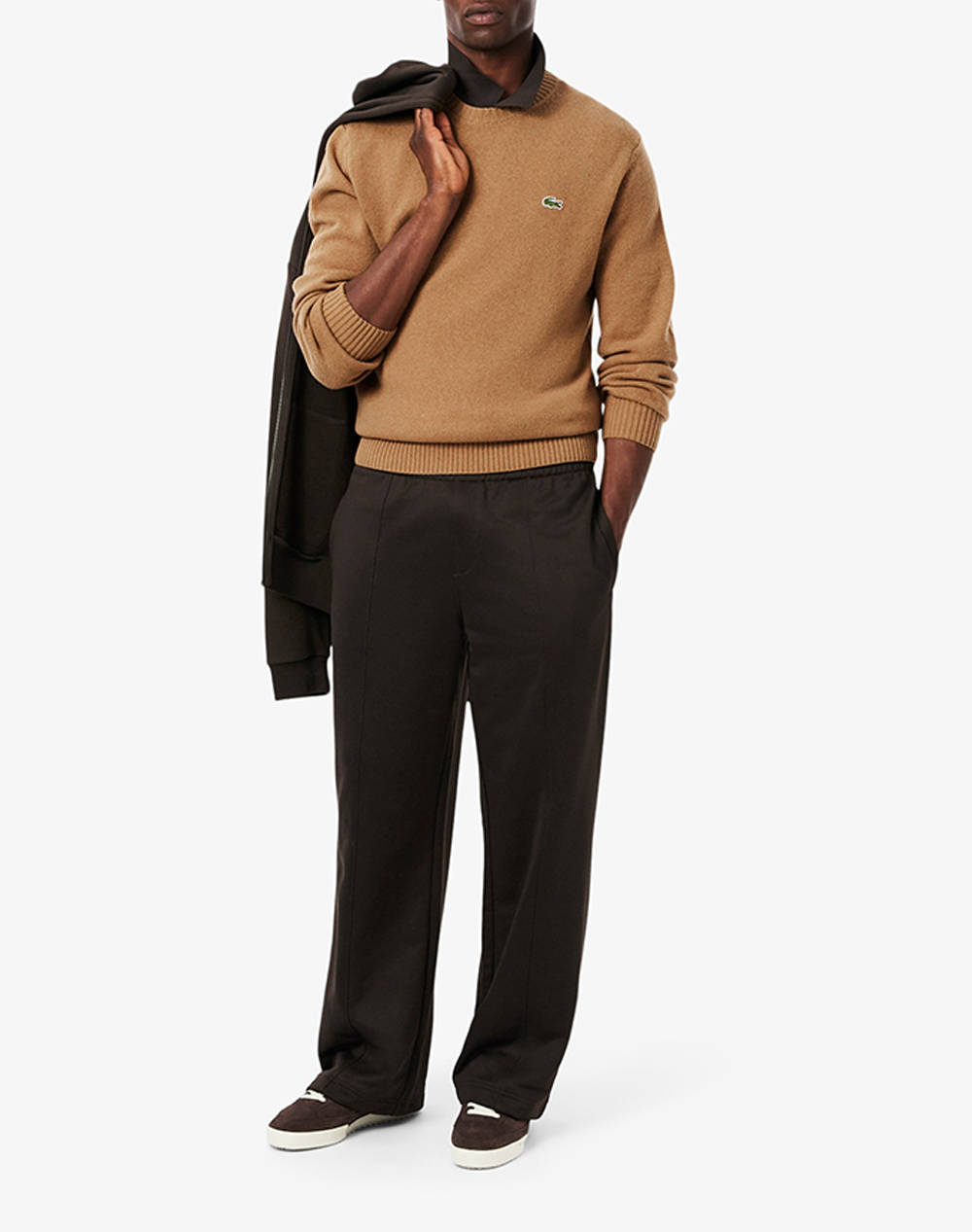 Ανδρικό πουλόβερ, σε κανονική γραμμή, με ribbed λεπτομέρειες, στρογγυλή λαιμόκοψη και κεντημένο λογότυπο στο στήθος. (Σύνθεση: 100% Μαλλί)