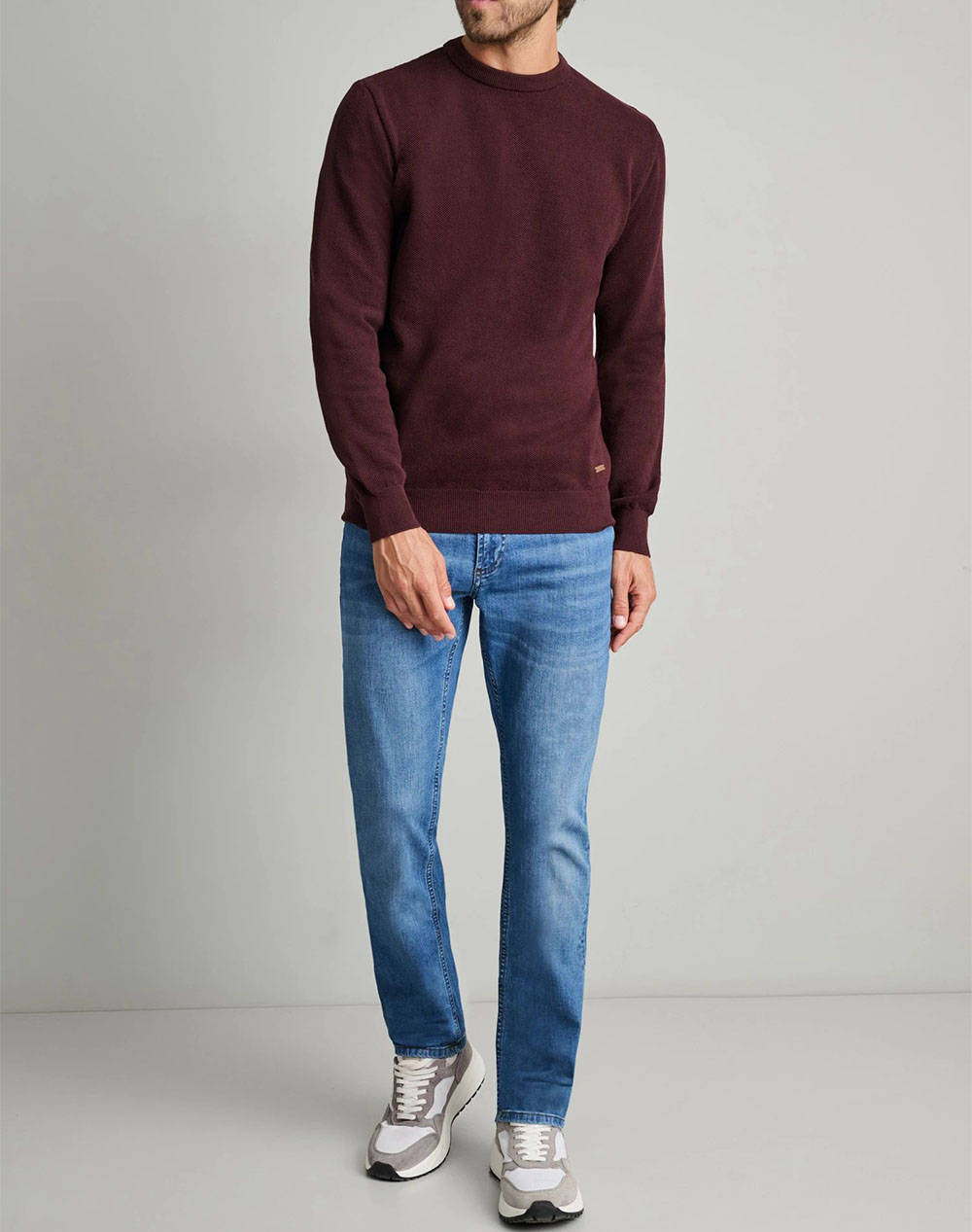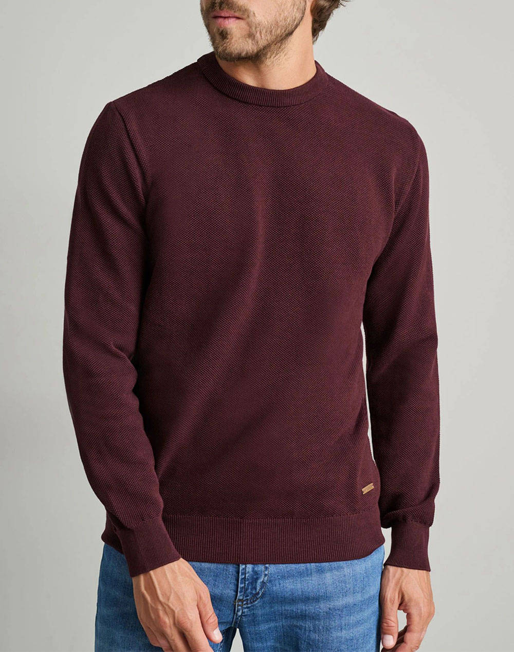 Ανδρική πλεκτή μπλούζα, σε κανονική γραμμή, μονόχρωμη, μακρυμάνικη, με Jacquard πλέξη και στρογγυλή λαιμόκοψη.(Σύνθεση: 100% Βαμβάκι)