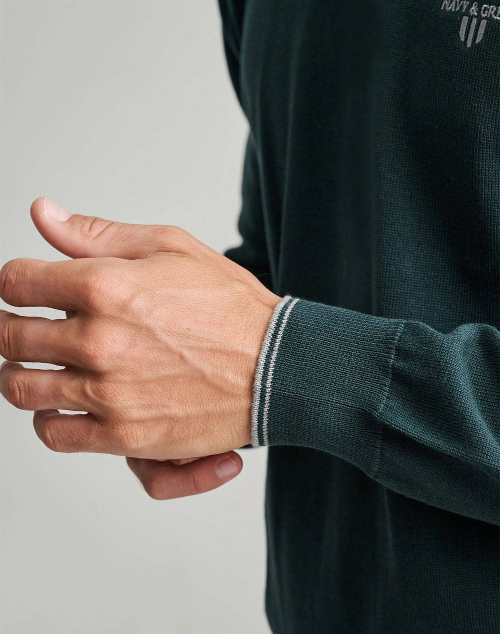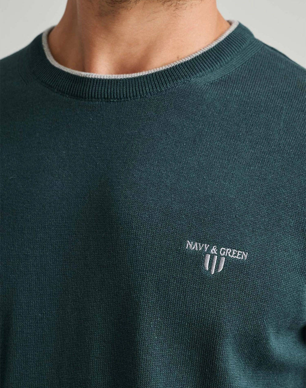 Ανδρική πλεκτή μπλούζα, σε κανονική γραμμή, μονόχρωμη, μακρυμάνικη, με στρογγυλή λαιμόκοψη με contrast λεπτομέρεια και λογότυπο στο στήθος.(Σύνθεση: 100% Βαμβάκι)