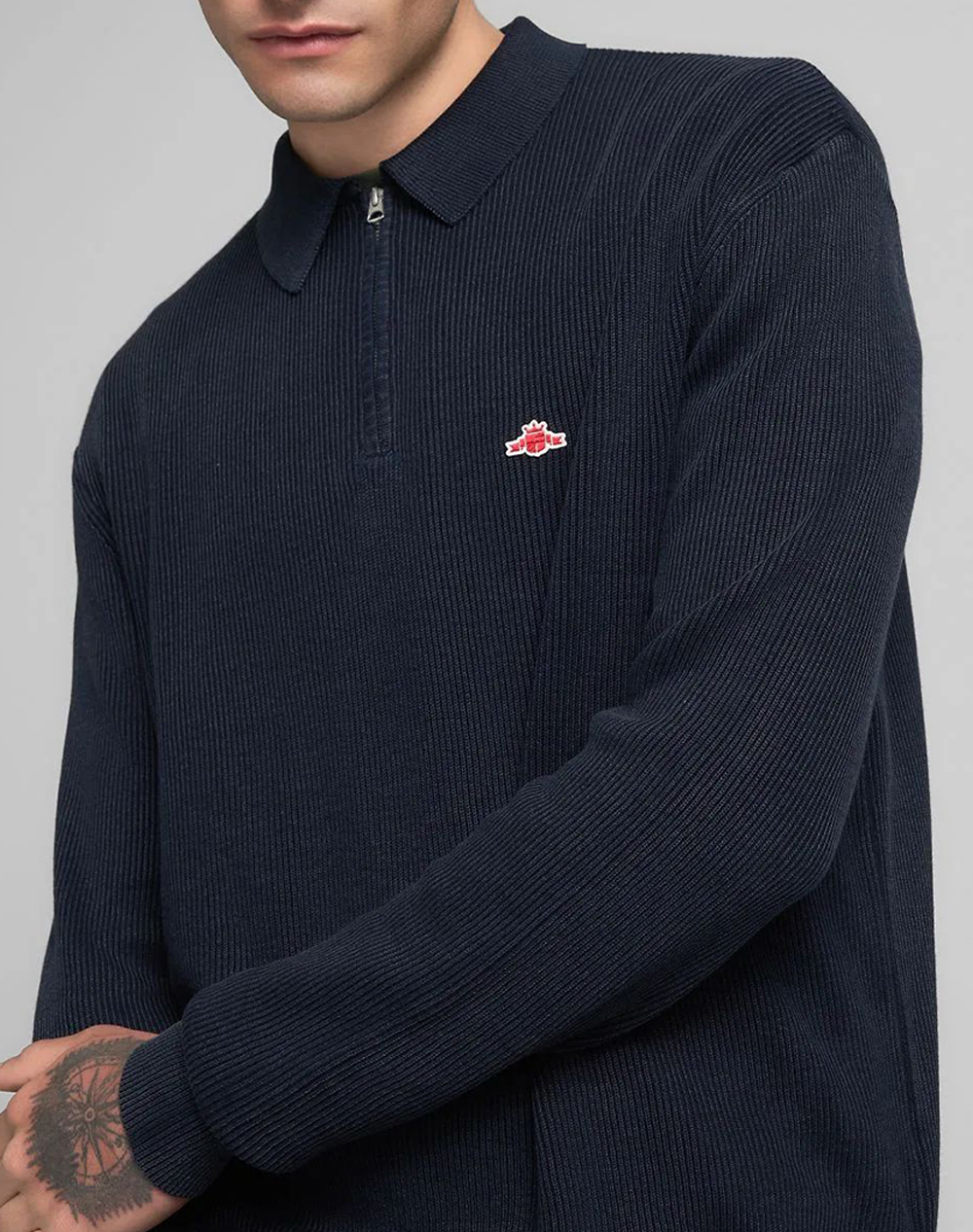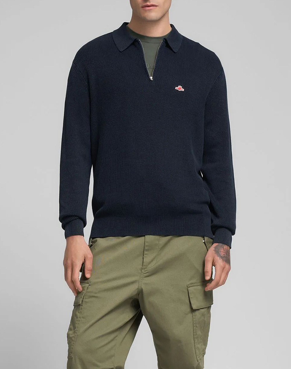Ανδρικό πουλόβερ, σε κανονική γραμμή, μακρυμάνικο, με κλασικό γιακά, half zip και κεντητό λογότυπο στο στήθος. (Σύνθεση: 100% Βαμβάκι)