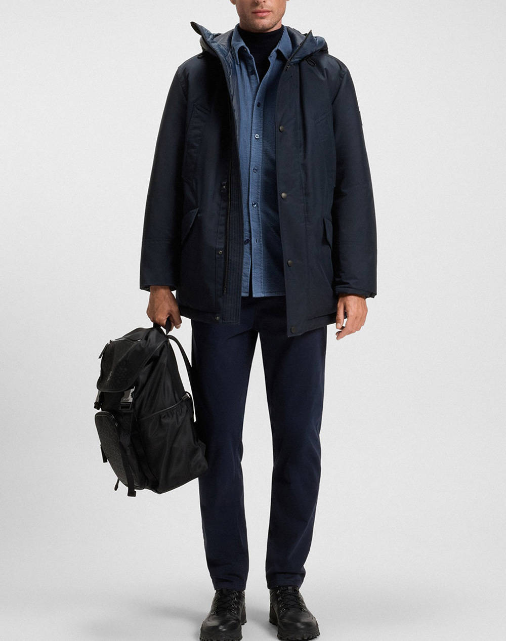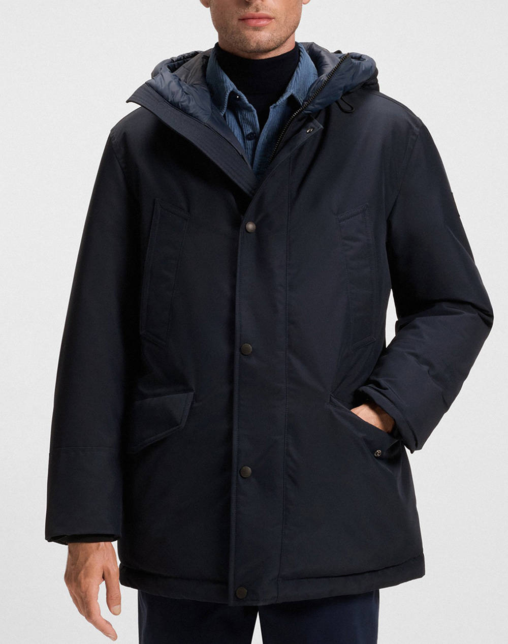 Ανδρικό μπουφάν parka, αδιάβροχο, σε χαλαρή γραμμή, με ρυθμιζόμενη κουκούλα, μπροστινές τσέπες και κλείσιμο με φερμουάρ και κουμπιά. (Σύνθεση: 100% Πολυεστέρας, Γέμισμα: 100% Ανακυκλωμένος Πολυεστέρας)