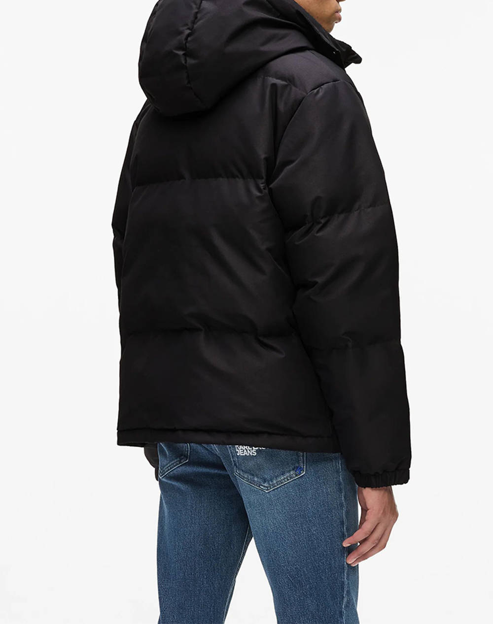 Ανδρικό μπουφάν puffer, σε κανονική γραμμή, με αποσπώμενη κουκούλα, ψηλό γιακά και κλείσιμο κατά μήκος με φερμουάρ. (Σύνθεση: 100% Ανακυκλωμένος πολυεστέρας)