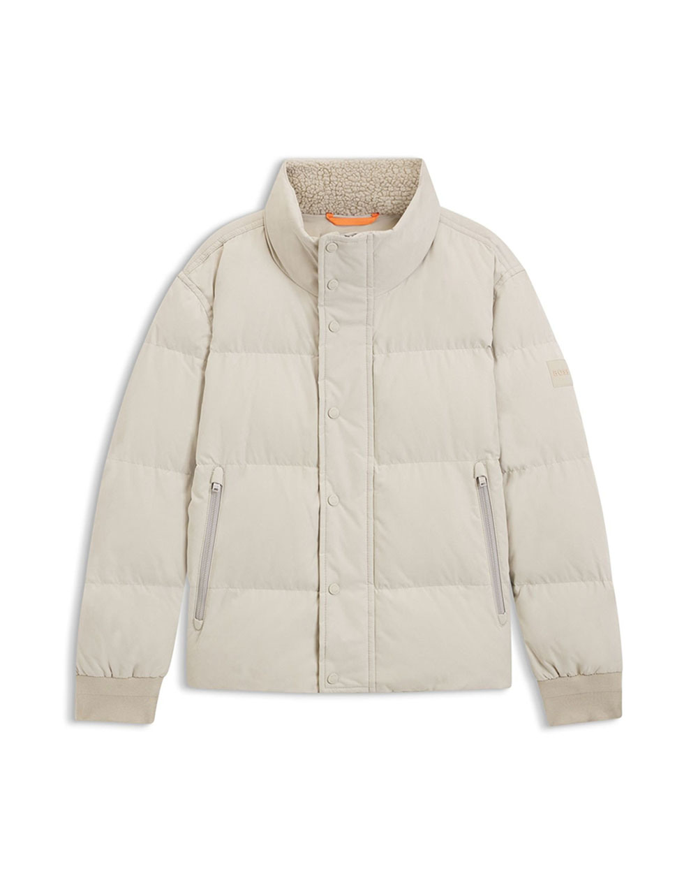 Ανδρικό μπουφάν, αδιάβροχο, σε άνετη γραμμή, διαθέτει όρθιο γιακά με γοόνινη επένδυση, πλαϊνές τσέπες και κλείσιμο μπροστά με φερμουάρ και κουμπιά. (Σύνθεση: 90% Ανακυκλωμένος πολυεστέρας, 10% Ανακυκλωμένο πολυαμίδιο)