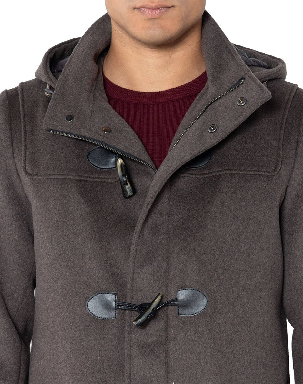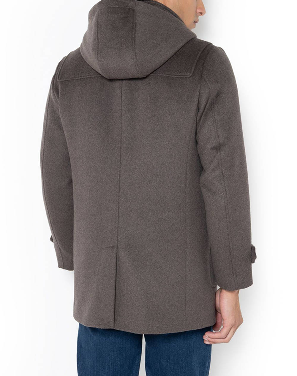 Ανδρικό παλτό montgomery, σε κανονική γραμμή, μονόχρωμο, με κουκούλα που αφαιρείται και κλείσιμο με φερμουάρ.(Σύνθεση: 50% Μαλλί, 45% Πολυεστέρας, 5% Πολυαμίδιο)
