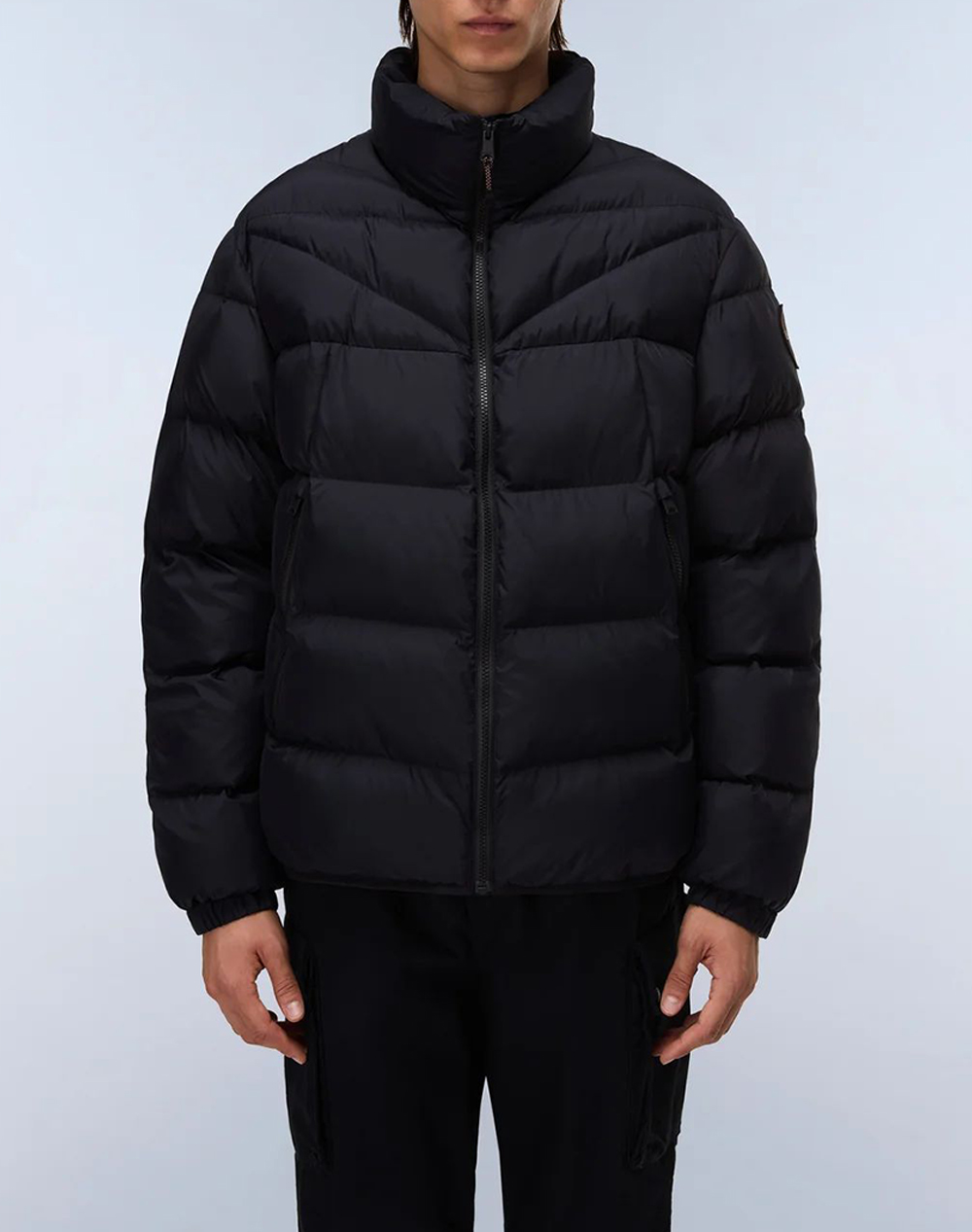 Ανδρικό μπουφάν puffer, αδιάβροχο, σε χαλαρή γραμμή, με πλαϊνές τσέπες, όρθιο γιακά και κλείσιμο κατά μήκος με φερμουάρ. (Σύνθεση: 100% ανακυκλωμένο πολυαμίδιο, Επένδυση: THERMOFIBRE®)