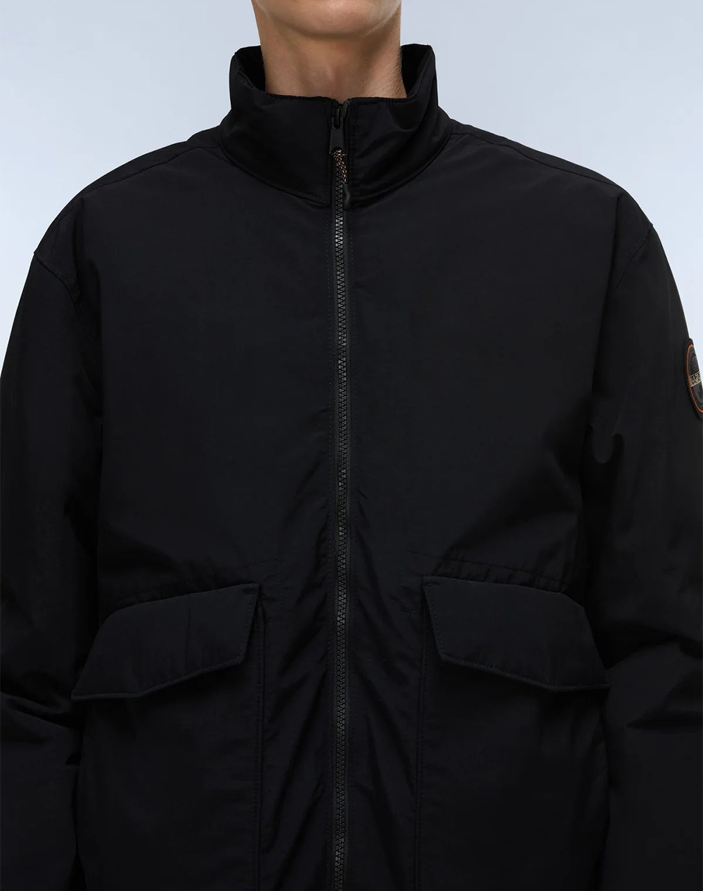 Ανδρικό μπουφάν, αδιάβροχο, αντιανεμικό, σε χαλαρή γραμμή, με πλαϊνές τσέπες, όρθιο γιακά και κλείσιμο κατά μήκος με φερμουάρ. (Σύνθεση: 100% Πολυαμίδιο, Επένδυση: Micropile fleece)