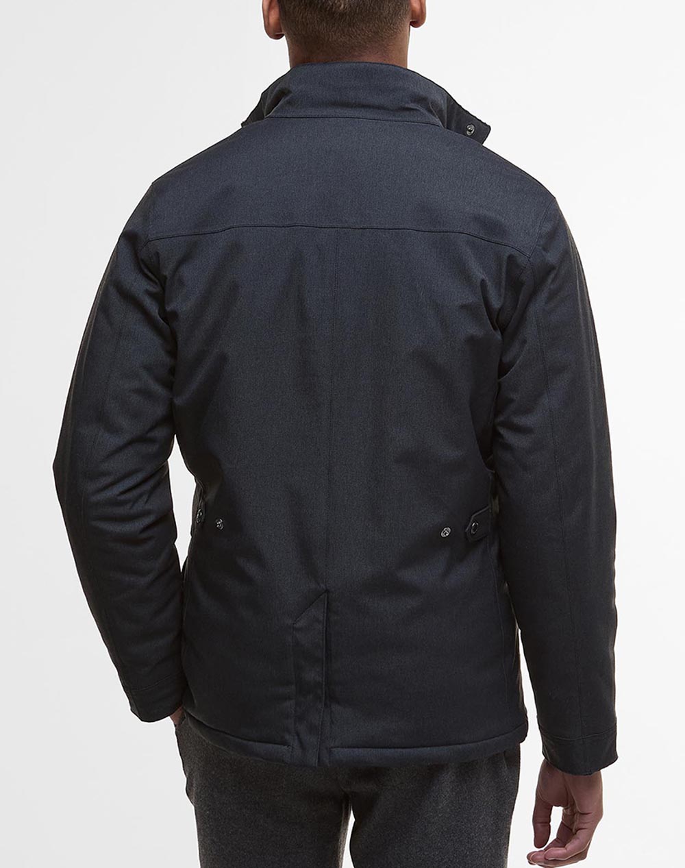 Ανδρικό μπουφάν, αδιάβροχο, σε γραμμή tailored, με όρθιο γιακά, μπροστινές τσέπες και κλείσιμο μπροστά με φερμουάρ και κουμπιά. (Σύνθεση: 58% Πολυαμίδιο, 42% Πολυεστέρας, Γέμιση: 100% Πολυεστέρας)