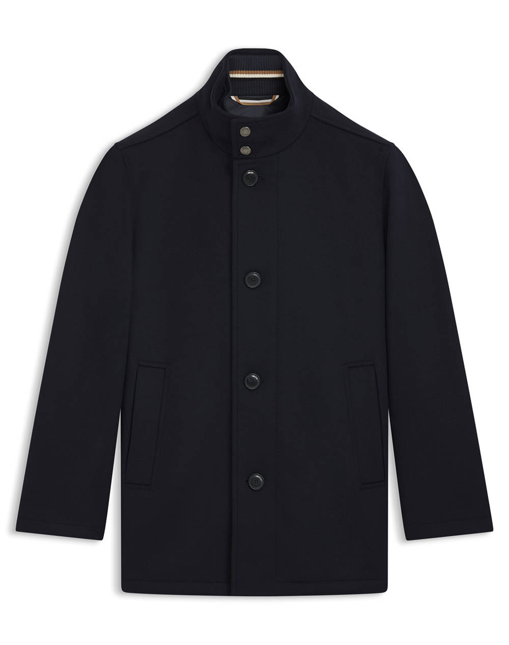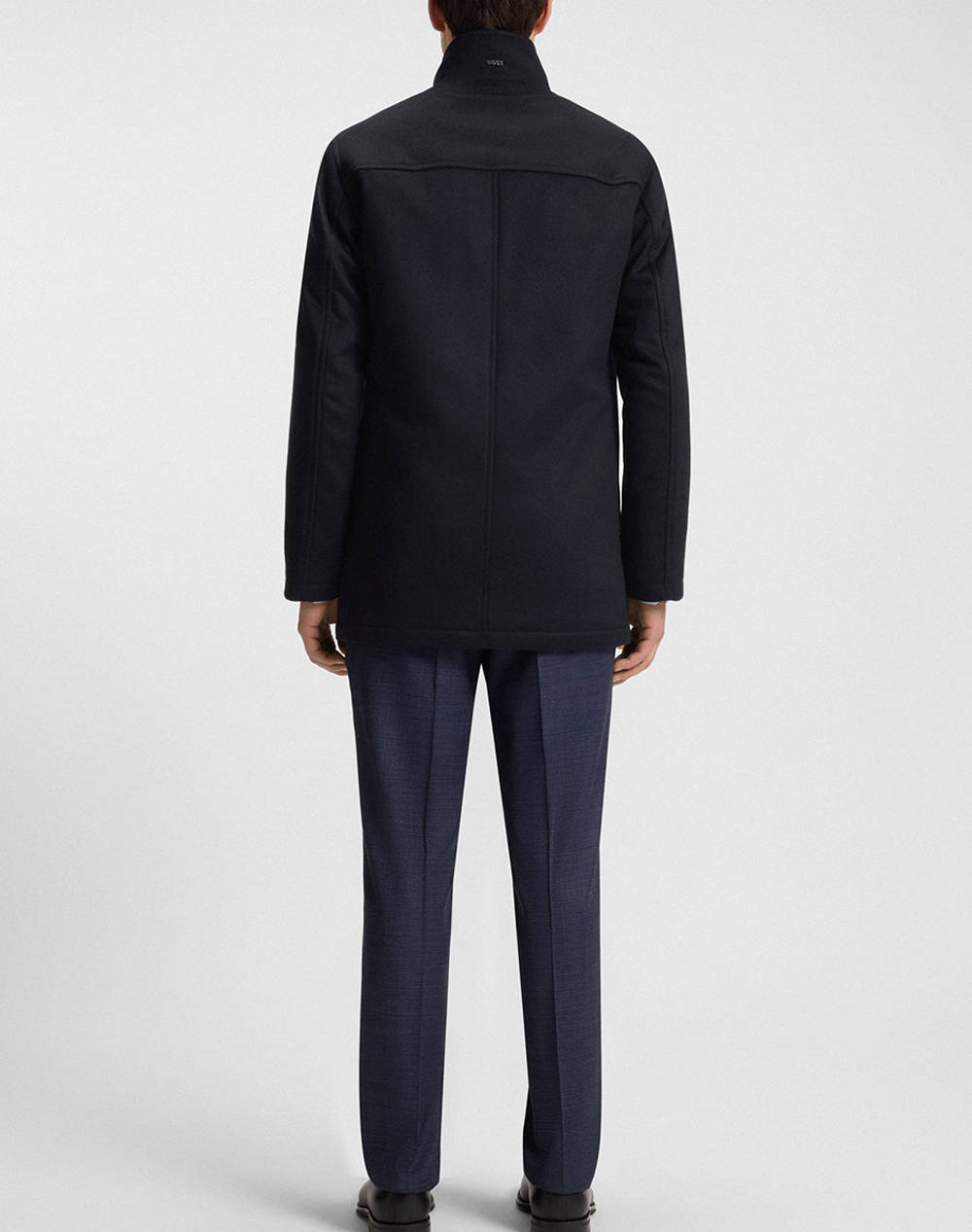 Ανδρικό παλτό, σε χαλαρή γραμμή, με όρθιο γιακά, εσωτερικό καπιτονέ ένθετο που κλείνει με φερμουάρ. Διαθέτει πλαϊνές τσέπες και κλείνει μπροστά με κουμπιά. (Σύνθεση: 90% Μαλλί, 10% RWS)
