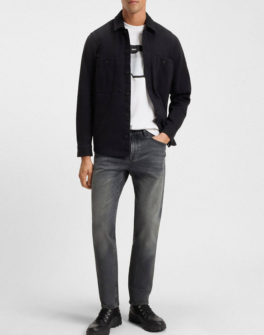 Ανδρικό jean παντελόνι, σε κανονική γραμμή, με πεντάτσεπο σχέδιο και κλείσιμο με φερμουάρ και κουμπί. (Σύνθεση: 99% Βαμβάκι, 1% Ελαστάνη)