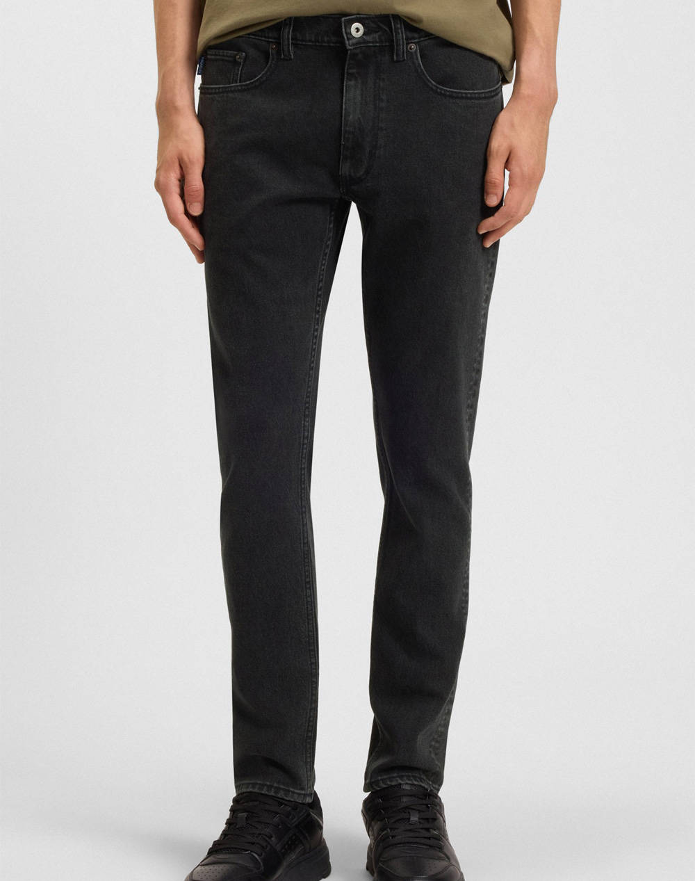 Ανδρικό jean παντελόνι, σε στενή γραμμή, με κανονική μέση, πεντάστεπο σχέδιο και κλείσιμο με φερμουάρ και κουμπί. (Σύνθεση: 99% Βαμβάκι, 1% Ελαστάνη)