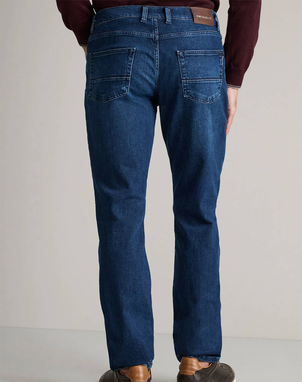 Ανδρικό τζίν παντελόνι, σε κανονική γραμμή, με πεντάτσεπο σχέδιο και κλείσιμο με κουμπί. (Σύνθεση: 61% Βαμβάκι,22% Ru, 16% Πολυεστέρας, 1% Ελαστάνη)