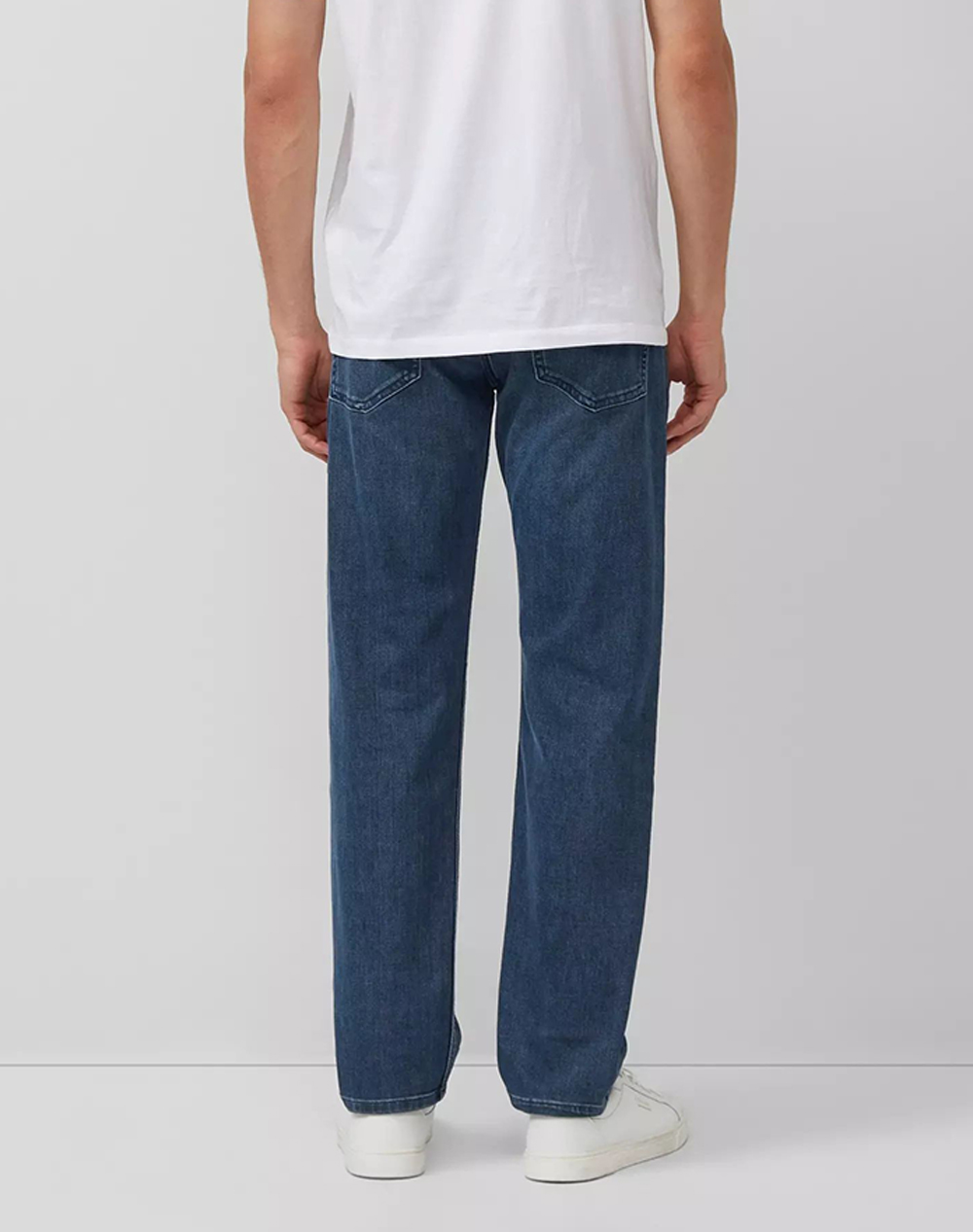 Ανδρικό jean παντελόνι, σε κανονική γραμμή, με κανονική μέση, πεντάτσεπο σχέδιο και κλείσιμο με φερμουάρ και κουμπί. (Σύνθεση: 64% Βαμβάκι, 34% Πολυεστέρας, 2% Ελαστάνη)