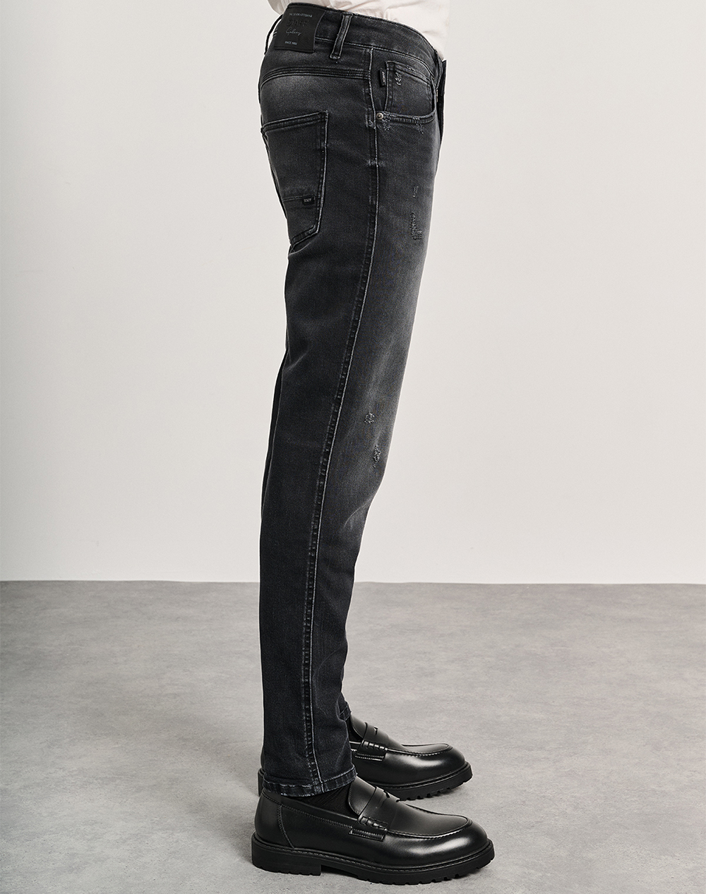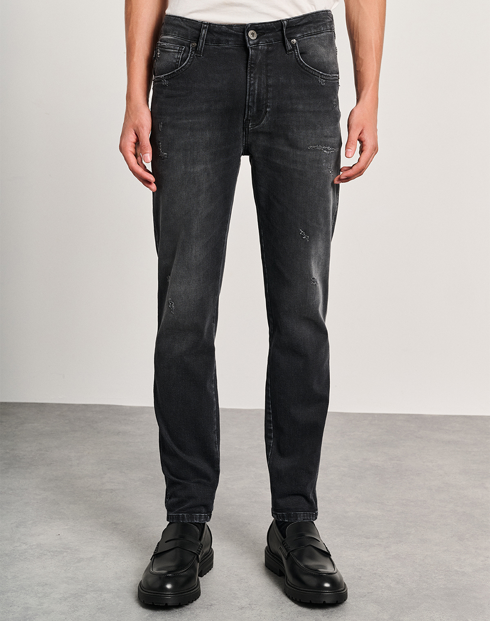 Ανδρικό τζίν παντελόνι, σε κανονική γραμμή, με πεντάτσεπο σχέδιο, ελαφριές φθορές και κλείσιμο με κουμπί.(Σύνθεση: 92% Βαμβάκι, 6% Τ400, 2% Lyocell)