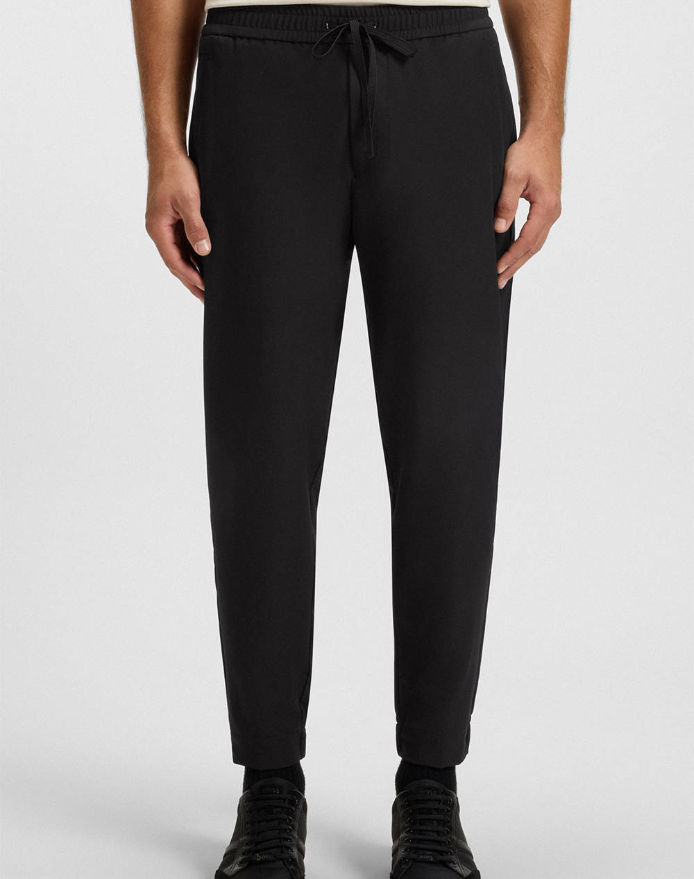 Ανδρικό παντελόνι, με αδιάβροχο ύφασμα, σε κωνική γραμμή, με πλαϊνές τσέπες και κανονική ελαστική μέση με κορδόνι. (Σύνθεση: 95% Ανακυκλωμένος πολυεστέρας, 5% Ελαστάνη)