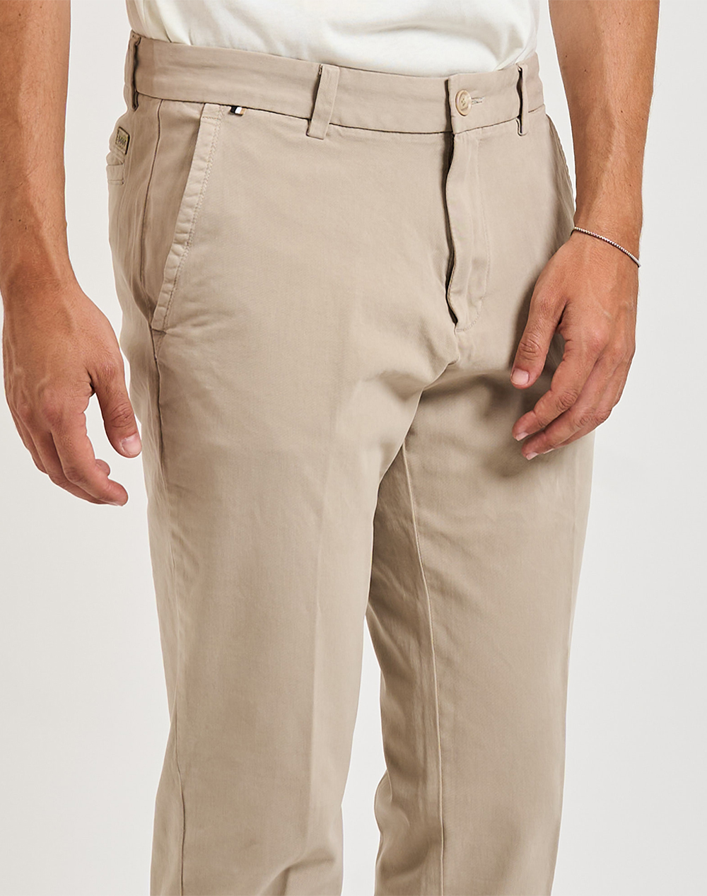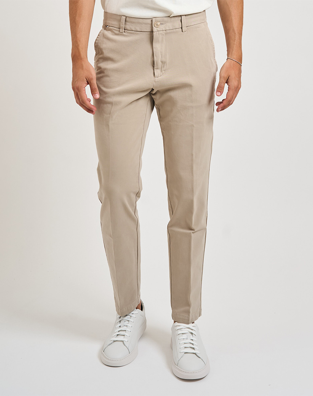 Ανδρικό παντελόνι, σε στενή γραμμή, με κανονική μέση και κλείσιμο με φερμουάρ και κουμπί. (Σύνθεση: 95% Βαμβάκι, 5% Ελαστάνη)