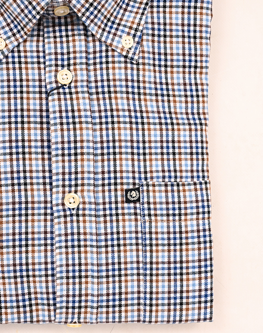Ανδρικό πουκάμισο, σε κανονική γραμμή, μακρυμάνικο, με καρό μοτίβο, button down γιακά, τσέπη με λογότυπο στο στήθος και κλείσιμο με κουμπιά. (Σύνθεση: 100% Βαμβάκι)