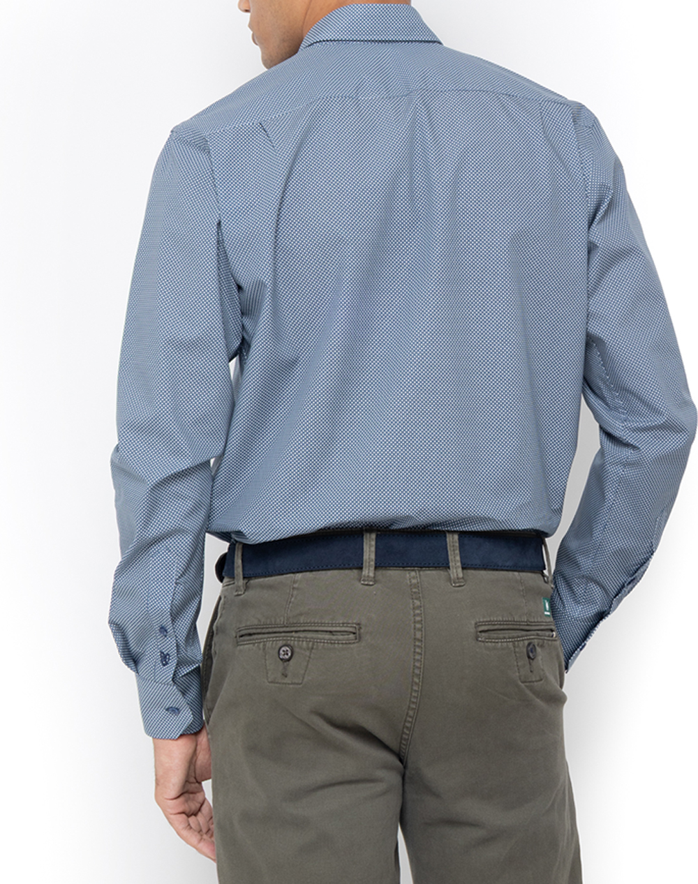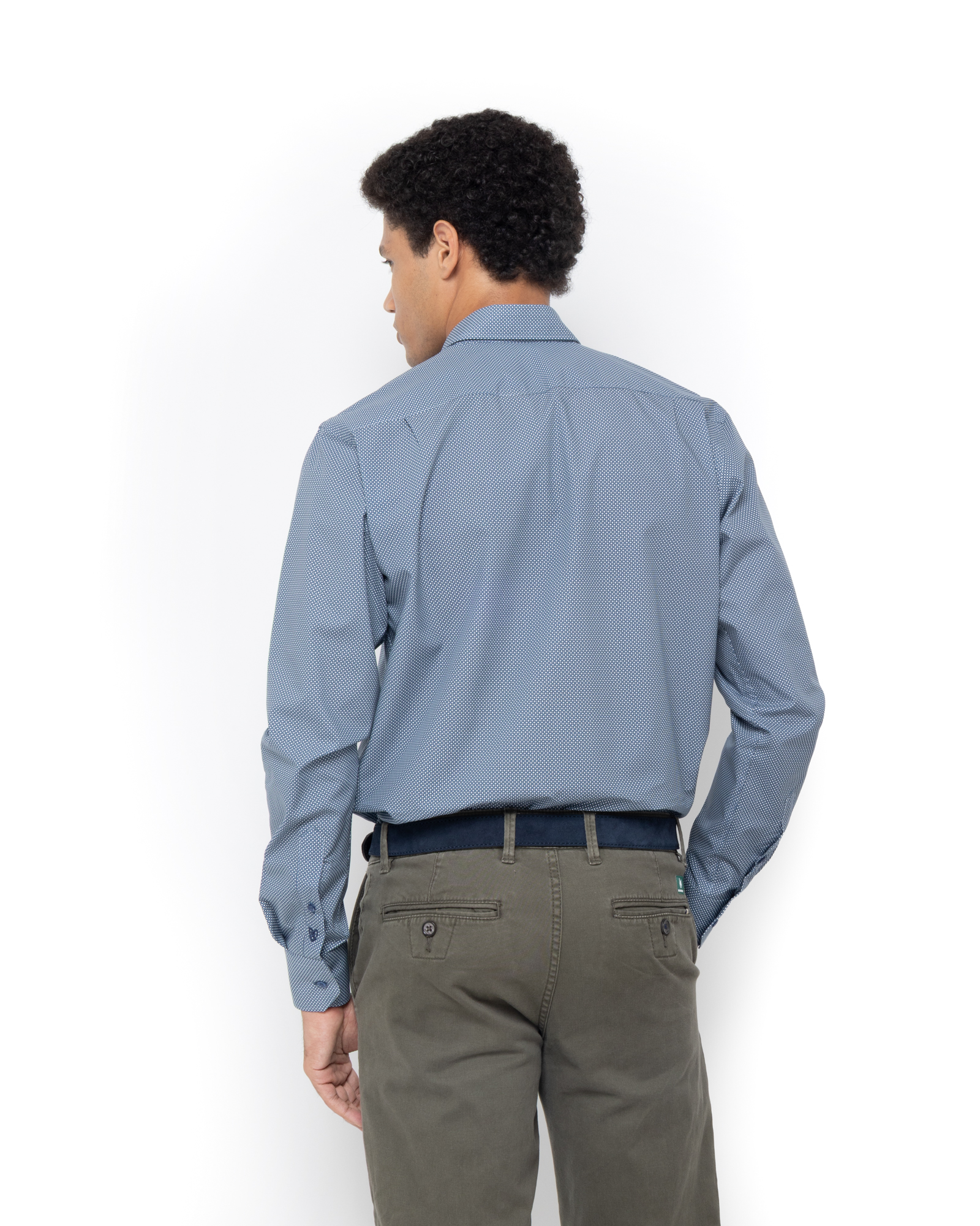 Ανδρικό πουκάμισο, σε κανονική γραμμή, μακρυμάνικο, με μικροσχέδιο, semi rex γιακά και κλείσιμο με κουμπιά.(Σύνθεση: 100% Βαμβάκι)