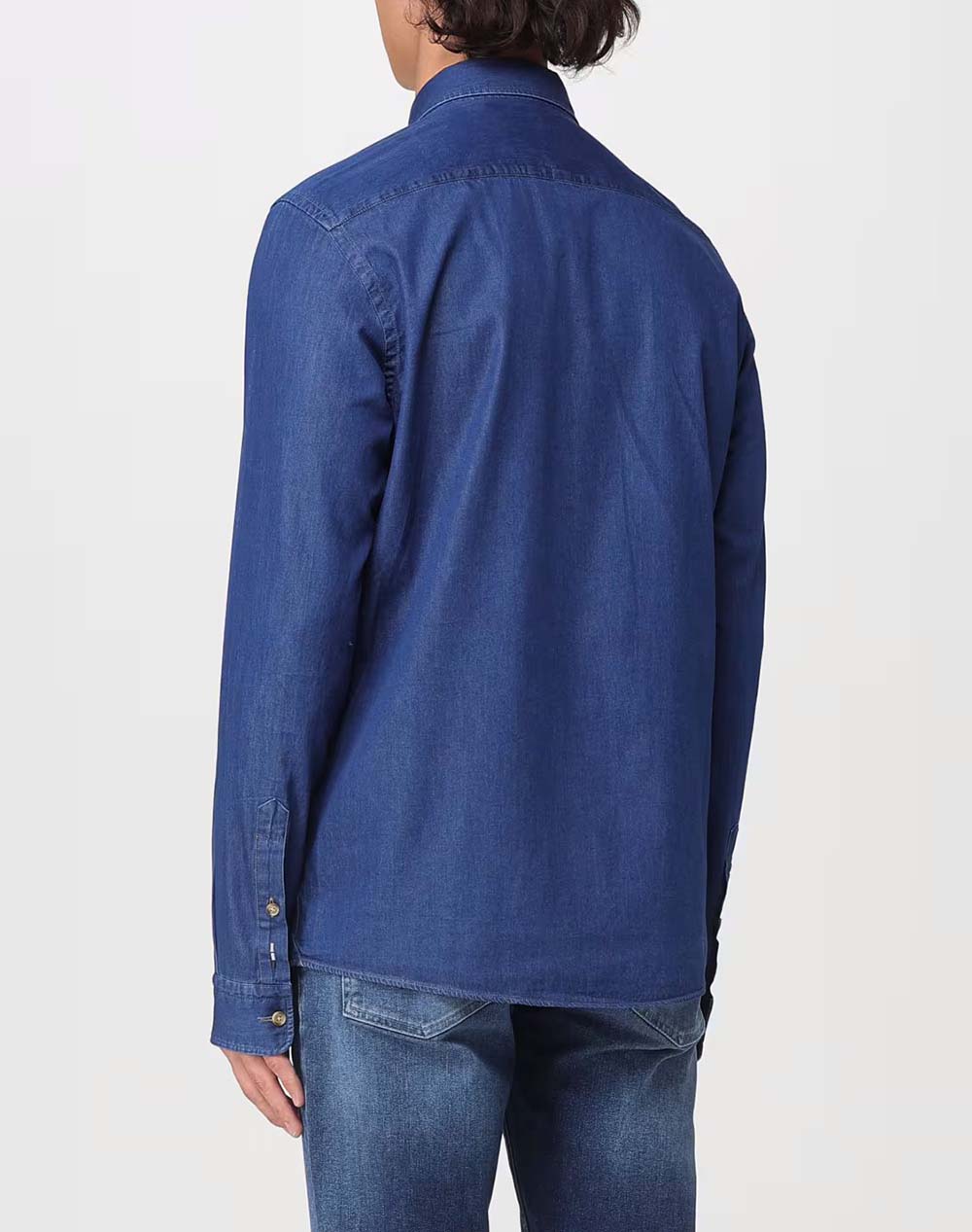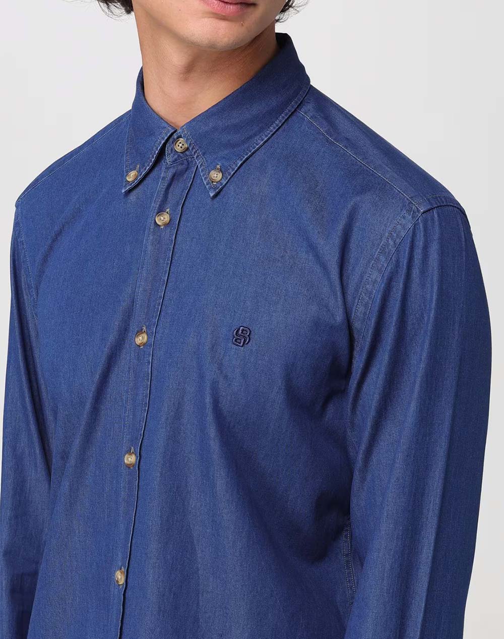 Ανδρικό πουκάμισο τύπου denim, σε στενή γραμμή, μακρυμάνικο, με κουμπιά στο γιακά και κεντητό λογότυπο στο στήθος. (Σύνθεση: 100% Βαμβάκι)