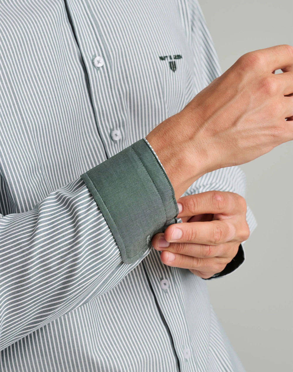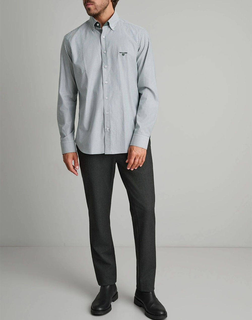 Ανδρικό πουκάμισο, σε κανονική γραμμή, μακρυμάνικο, με ριγέ μοτίβο, button down γιακά και κλείσιμο με κουμπιά.(Σύνθεση: 95%Βαμβάκι, 5% Ειδικό ελαστικό νήμα)