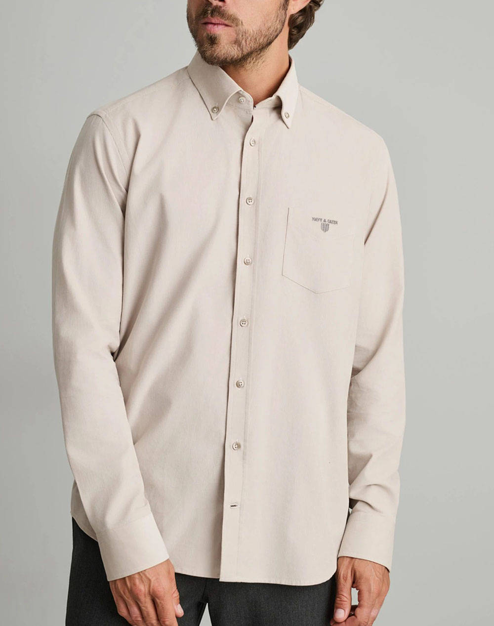 Ανδρικό πουκάμισο, σε κανονική γραμμή, μακρυμάνικο, μονόχρωμο, με τσέπη στο στήθος, button-down γιακά και κλείσιμο με κουμπιά.(Σύνθεση: 100% Βαμβάκι)