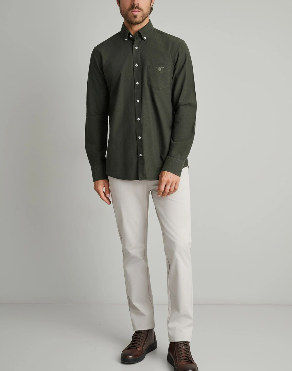 Ανδρικό πουκάμισο, σε κανονική γραμμή, μακρυμάνικο, με τσέπη στο στήθος με κεντημένο λογότυπο και κλείσιμο με κουμπιά. (Σύνθεση: 100% Βαμβάκι)