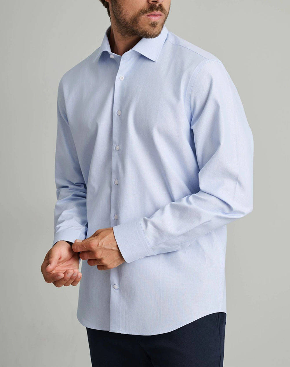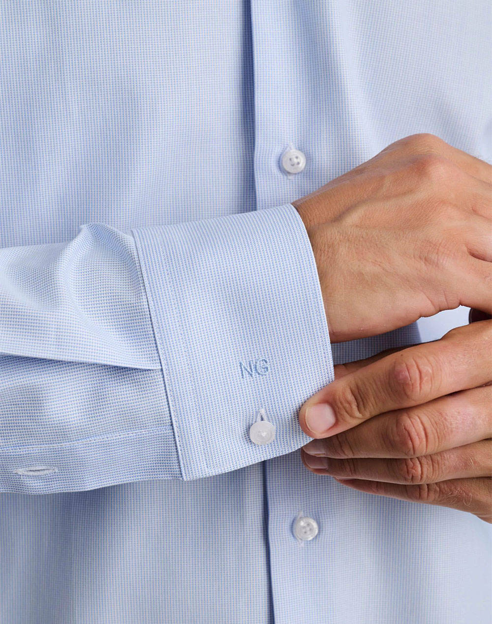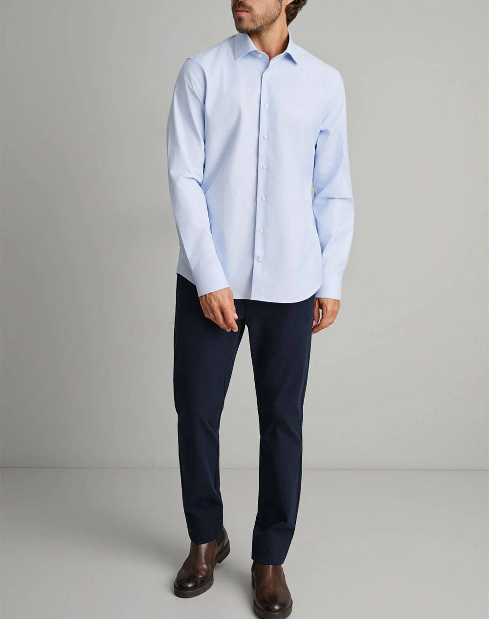 Ανδρικό πουκάμισο σε κανονική γραμμή, μονόχρωμο, μακρυμάνικο, με ανάγλυφη ύφανση και κλείσιμο με κουμπιά μπροστά. (Σύνθεση: 100% Βαμβάκι)