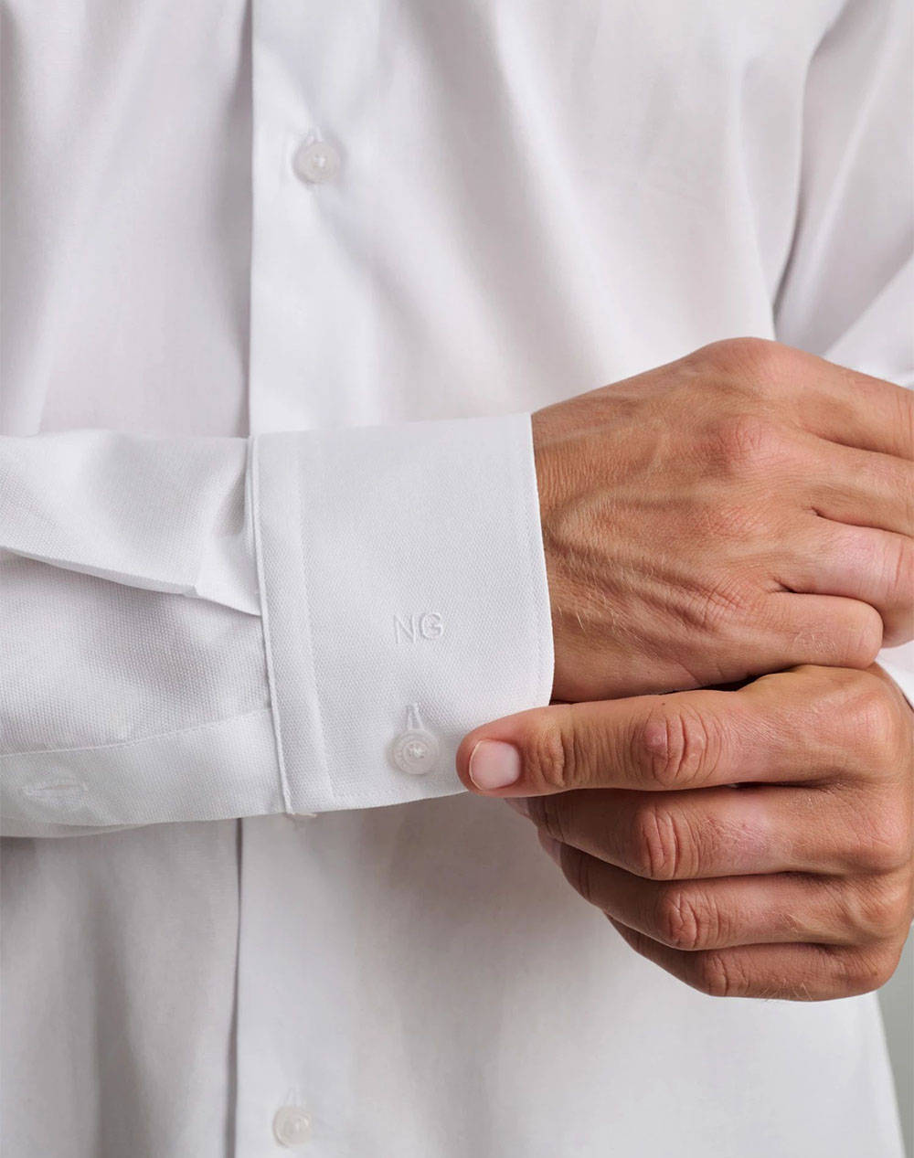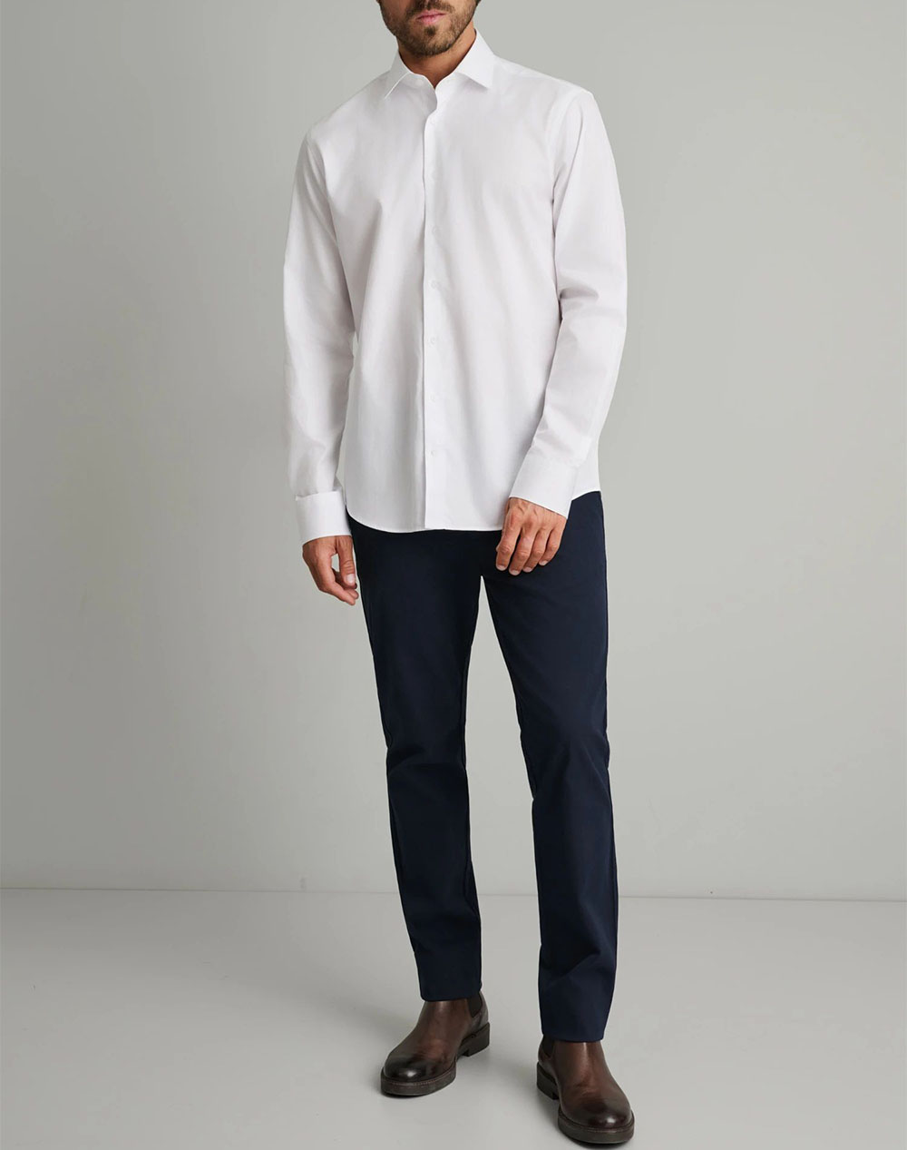 Ανδρικό πουκάμισο σε κανονική γραμμή, μονόχρωμο, μακρυμάνικο, με ανάγλυφη ύφανση, ανοιχτό γιακά και κλείσιμο με κουμπιά μπροστά. (Σύνθεση: 100% Βαμβάκι)