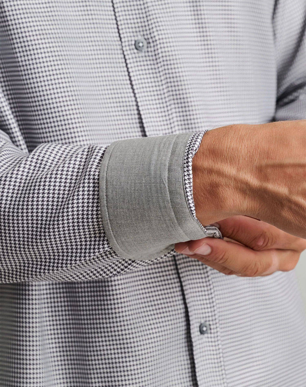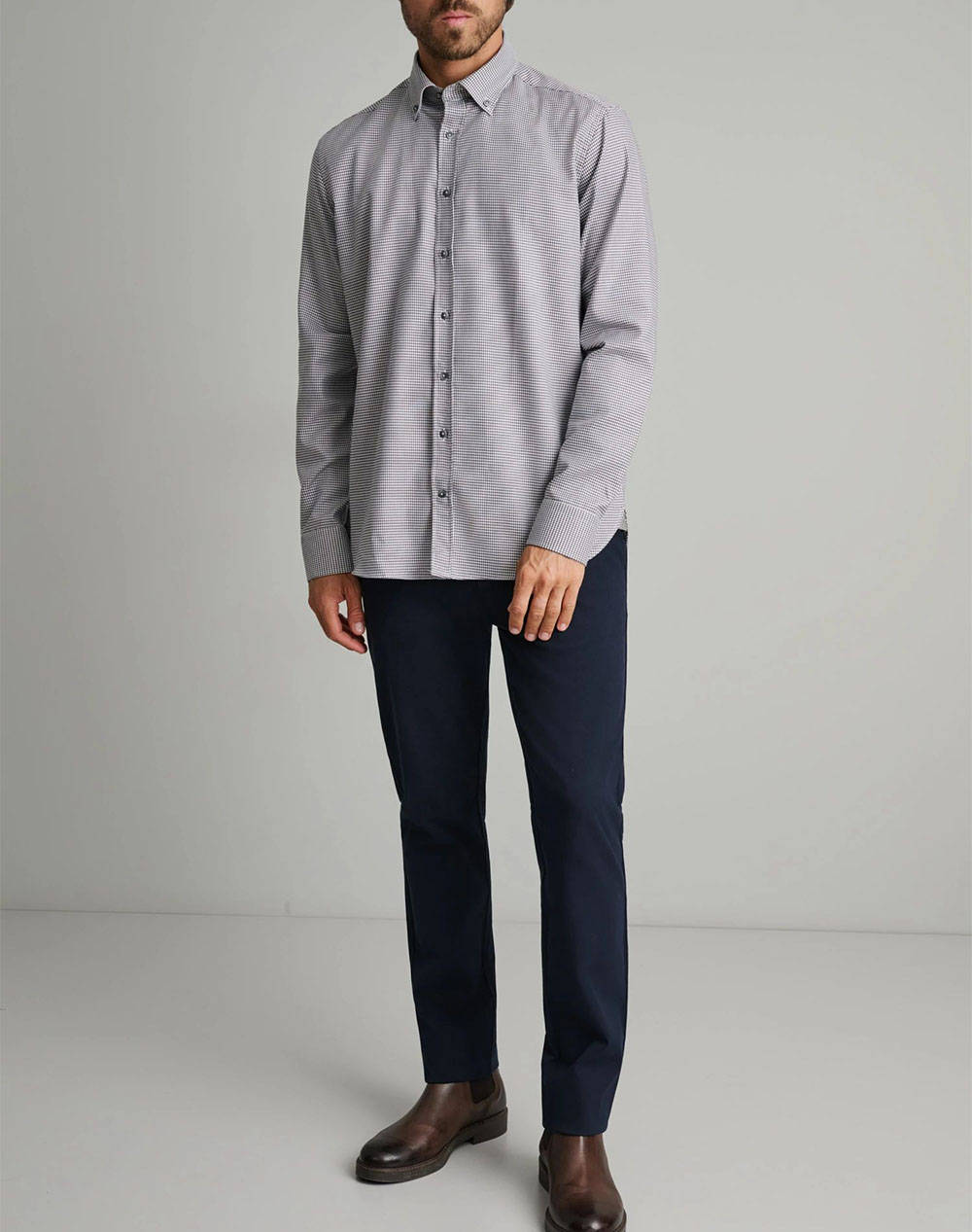 Ανδρικό πουκάμισο σε κανονική γραμμή, μακρυμάνικο, με pied de poule μοτίβο, button-down γιακά και κλείσιμο με κουμπιά μπροστά. (Σύνθεση: 100% Βαμβάκι)