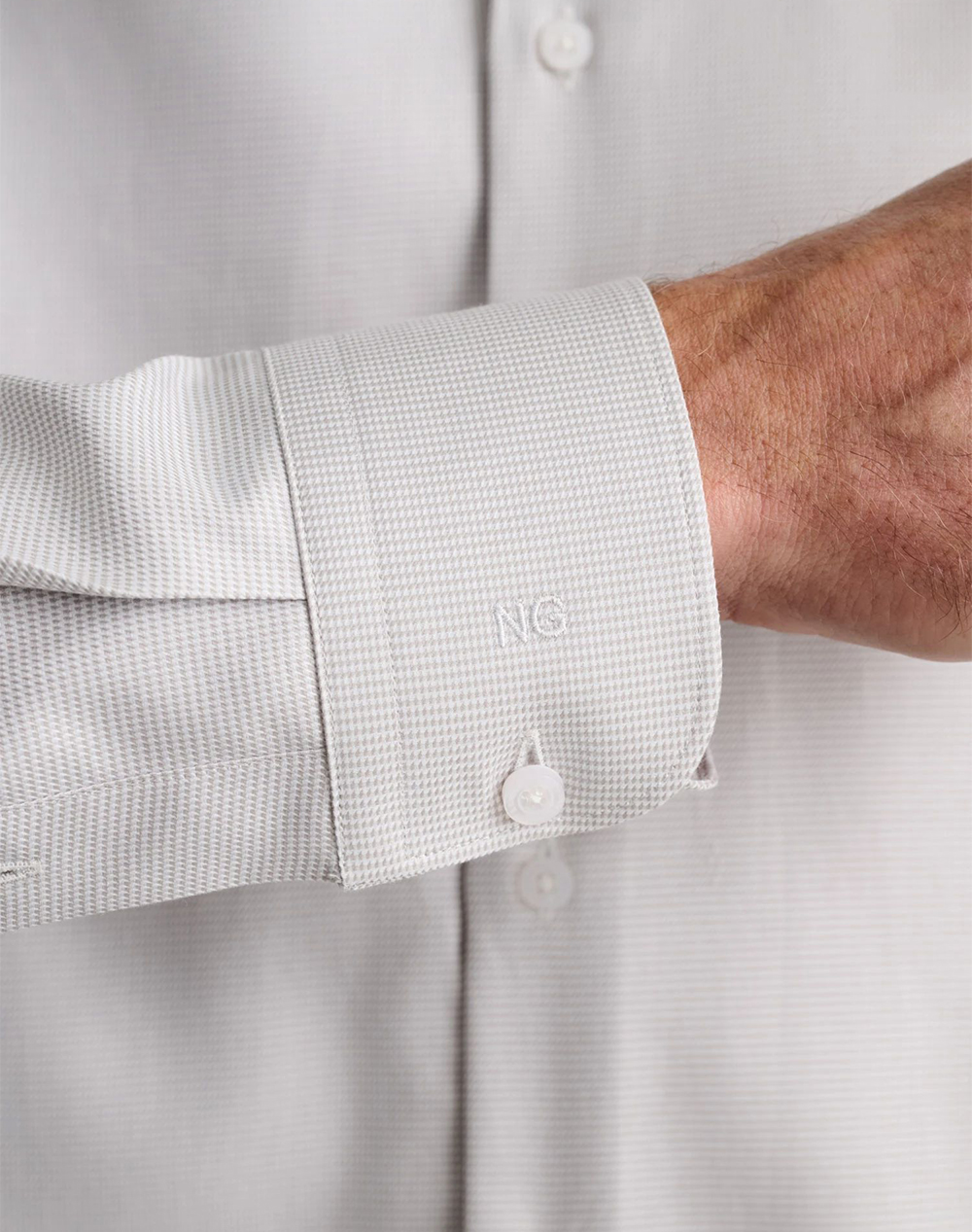 Ανδρικό πουκάμισο σε κανονική γραμμή, μακρυμάνικο, με semi rex γιακά, jacquard ύφανση και κλείσιμο με κουμπιά μπροστά. (Σύνθεση: 100% Βαμβάκι)