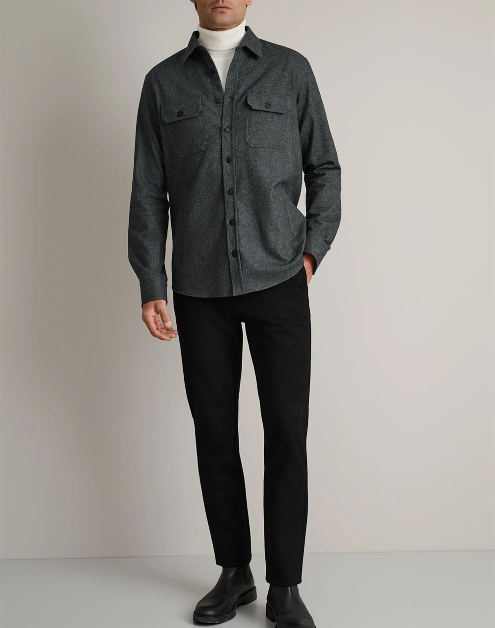 Ανδρικό πουκάμισο overshirt, σε κανονική γραμμή, μακρυμάνικο, με τσέπες στο στήθος, soft γιακά και κλείσιμο με κουμπιά μπροστά. (Σύνθεση: 70% Βαμβάκι, 30% Ανακυκλωμένο Βαμβάκι)