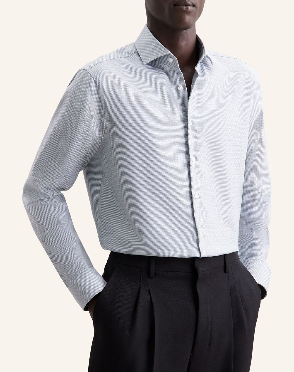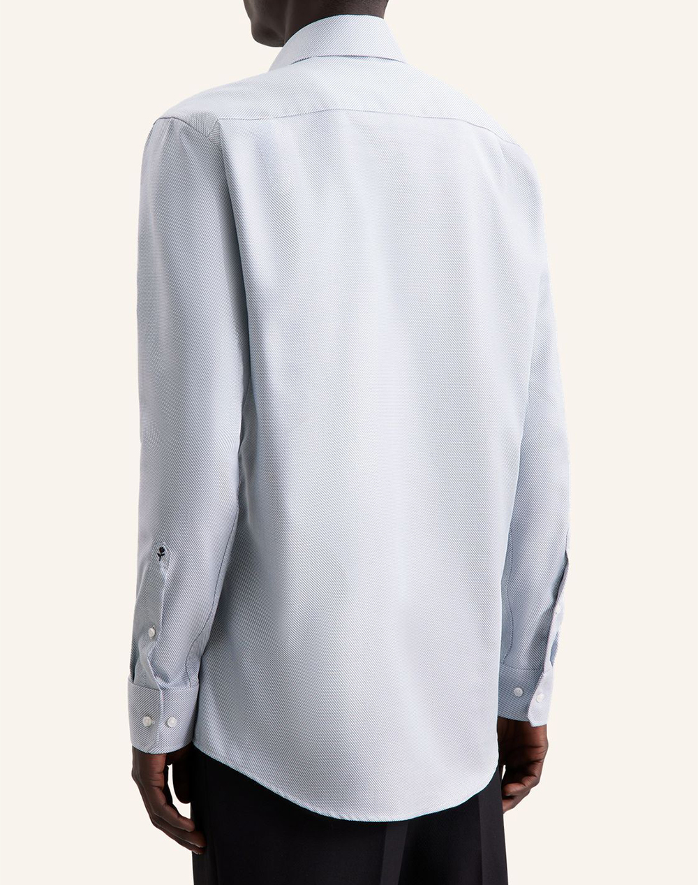 Ανδρικό πουκάμισο, σε κανονική γραμμή, μακρυμάνικο, με ανοιχτό γιακά Kent, twill ύφανση και κλείσιμο μπροστά με κουμπιά. Με τεχνολογία χωρίς σιδέρωμα. (Σύνθεση: 100% Βαμβάκι)