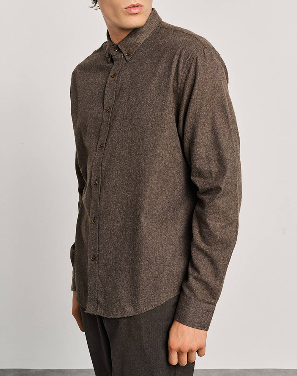 Ανδρικό πουκάμισο, μονόχρωμο, μακρυμάνικο, με κανονική γραμμή και κλείσιμο με κουμπιά. (Σύνθεση: 35% Πολυεστέρας, 65% Βαμβάκι)