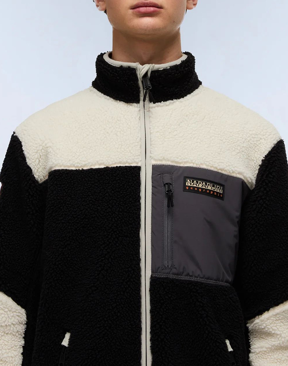Ανδρική fleece ζακέτα, σε κανονική γραμμή, μακρυμάνικη, με όρθιο γιακά, τσέπες με φερμουάρ και κλείσιμο κατά μήκος με φερμουάρ. (Σύνθεση: 80% Ανακυκλωμένος Πολυεστέρας, 20% Πολυεστέρας)
