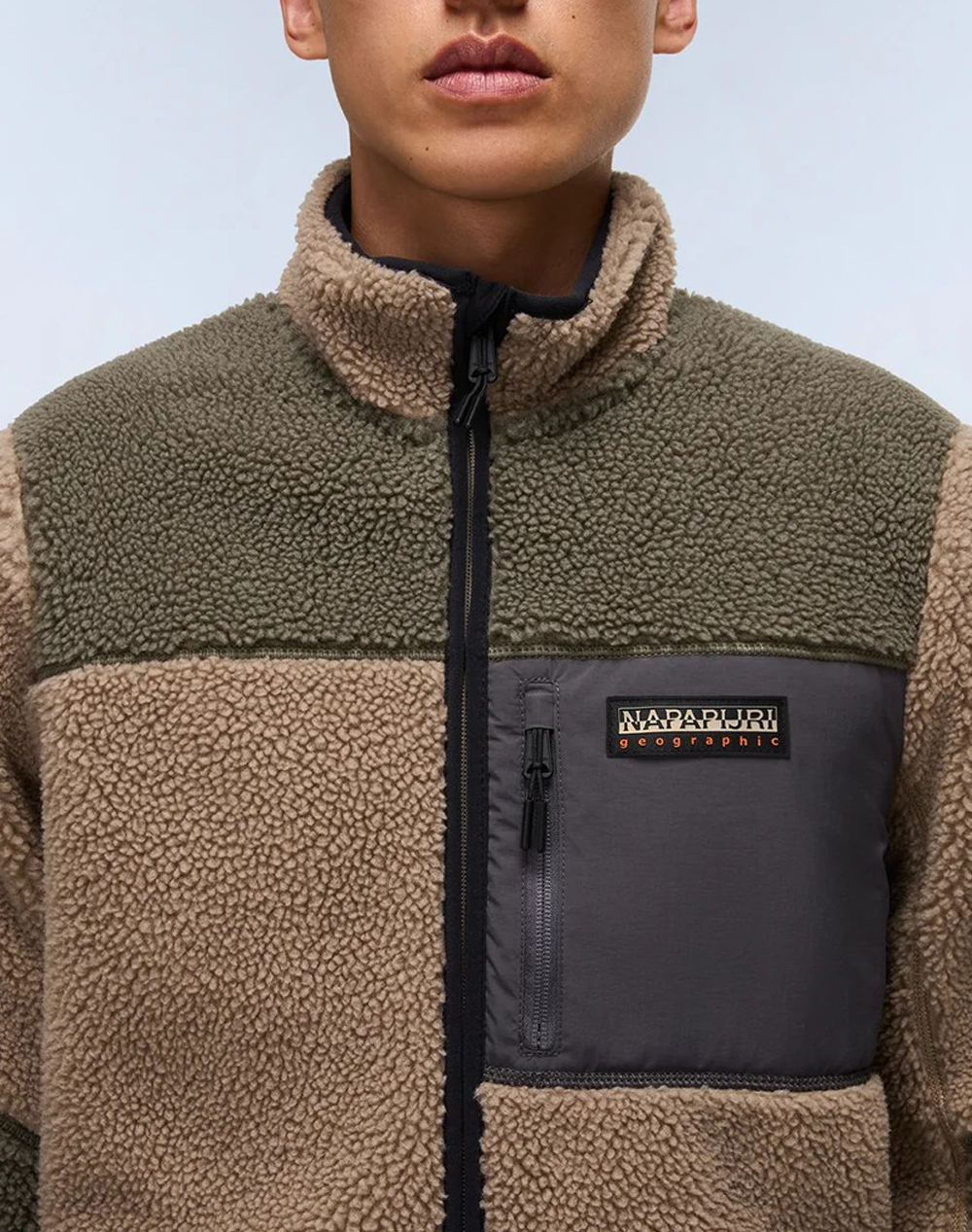 Ανδρική fleece ζακέτα, σε κανονική γραμμή, μακρυμάνικη, με όρθιο γιακά, τσέπες με φερμουάρ και κλείσιμο κατά μήκος με φερμουάρ. (Σύνθεση: 80% Ανακυκλωμένος Πολυεστέρας, 20% Πολυεστέρας)