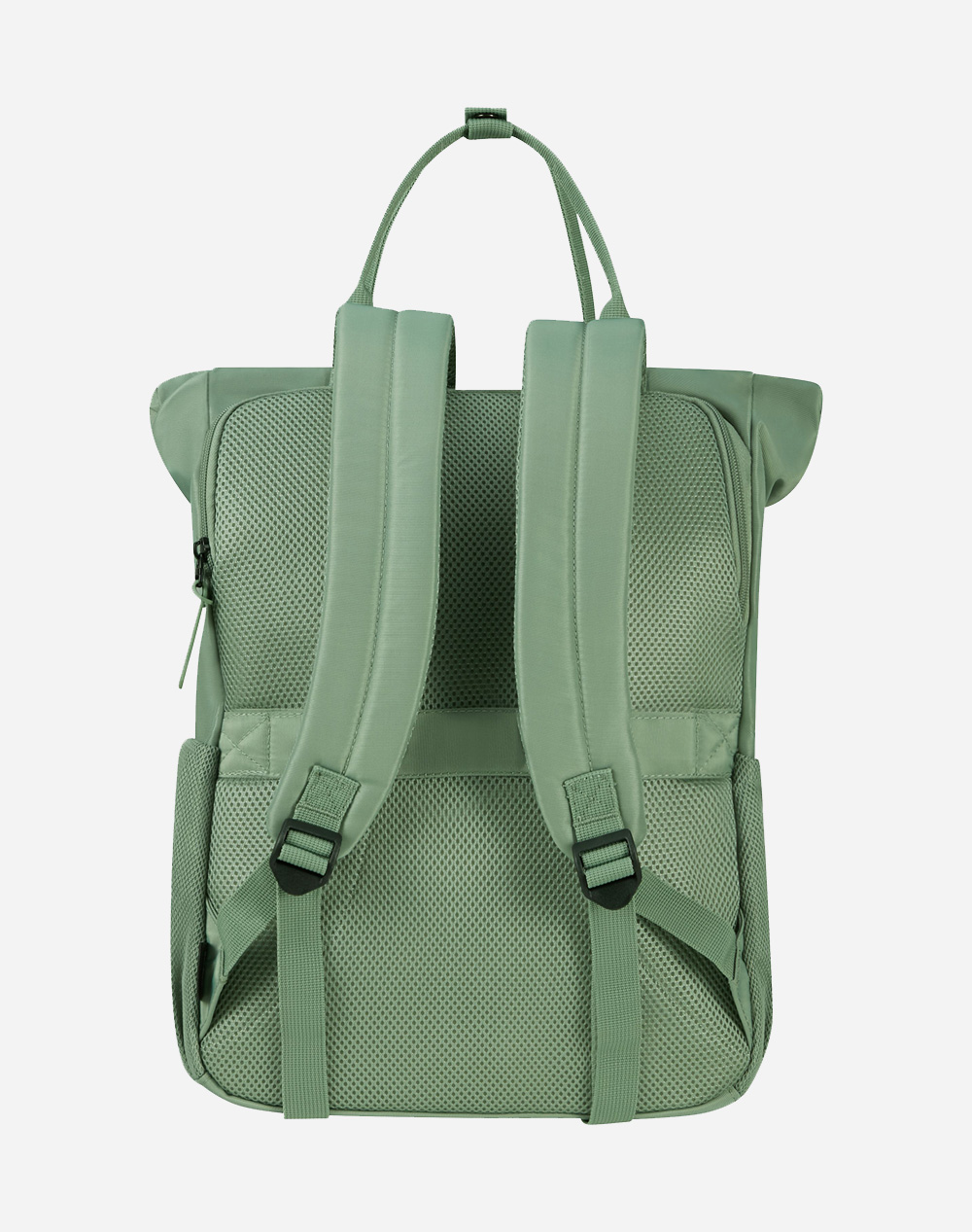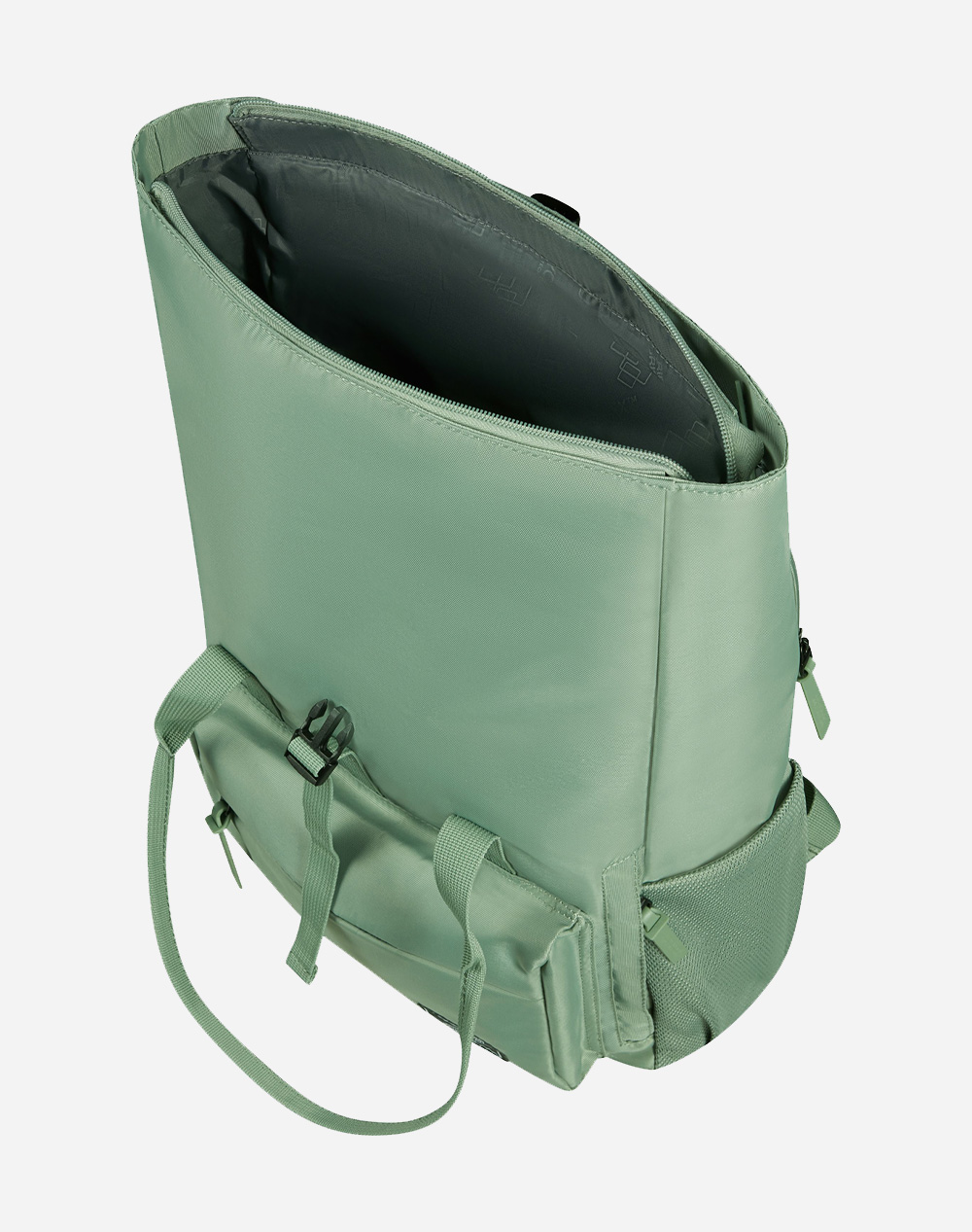 Σακίδιο πλάτης, με κύρια θήκη και εξωτερική τσέπη που κλείνουν με φερμουάρ. Διαθέτει πλαϊνές θήκες, θέση για laptop 15.6'', διπλές λαβές χειρός και ρυθμιζόμενους ιμάντες πλάτης. Διαστάσεις: 42.5 x 30.5 x 21εκ. (Σύνθεση: 100% rPet)